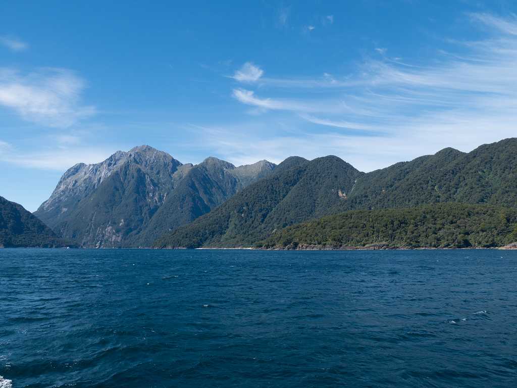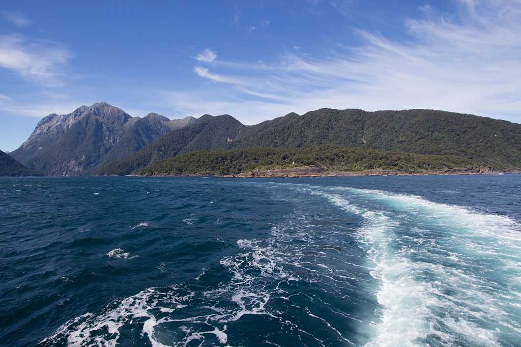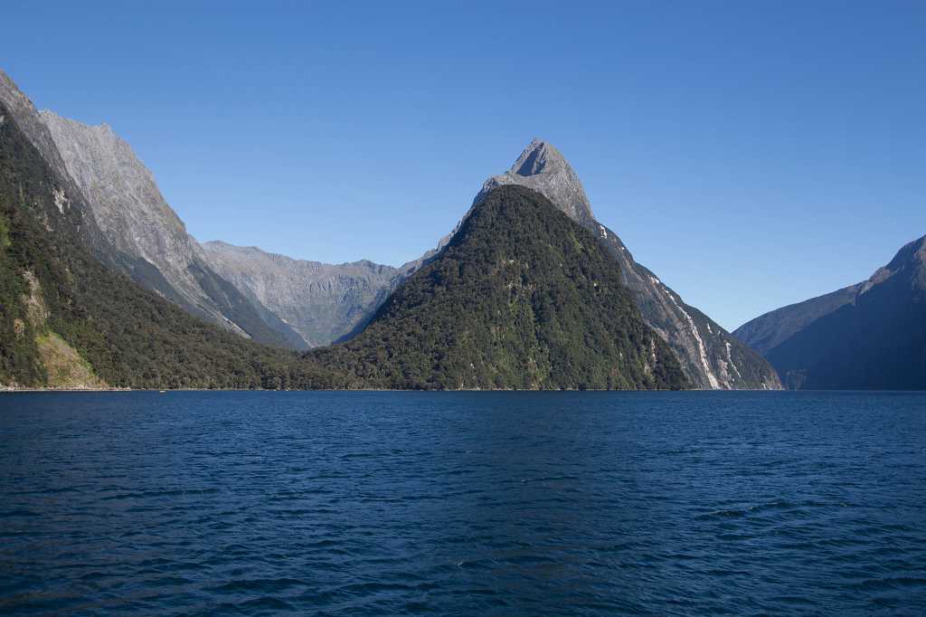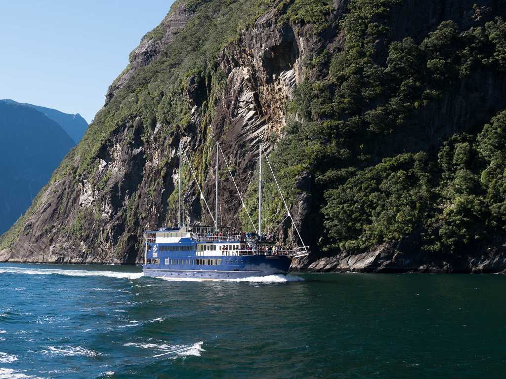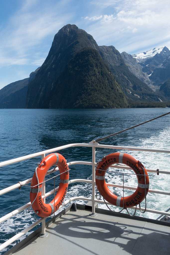 Die fast dreistündige Fahrt mit dem Motorsegler „Milford Wanderer“ führt durch den gesamten Sound bis zur „Tasmanischen See“. Der Fjord wird von über 1000 Meter hohen Felswänden umschlossen. Der markanteste Berg ist der „Mitre Peak“ (Bischofsmütze), er fällt fast senkrecht bis zur Wasseroberfläche ab.