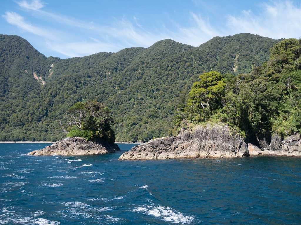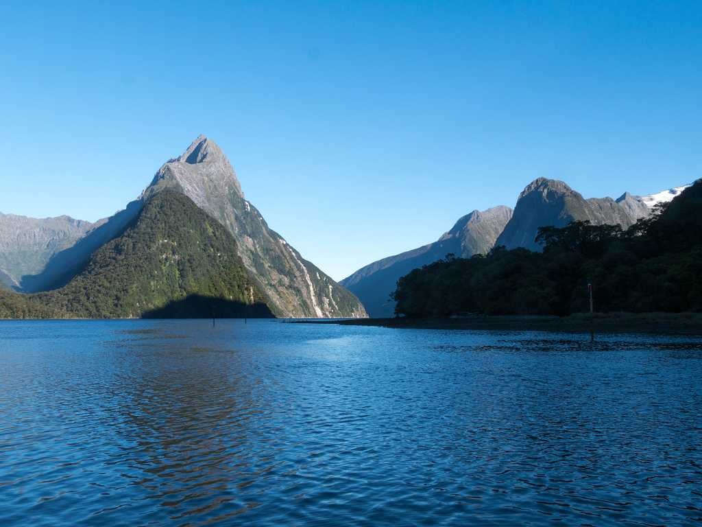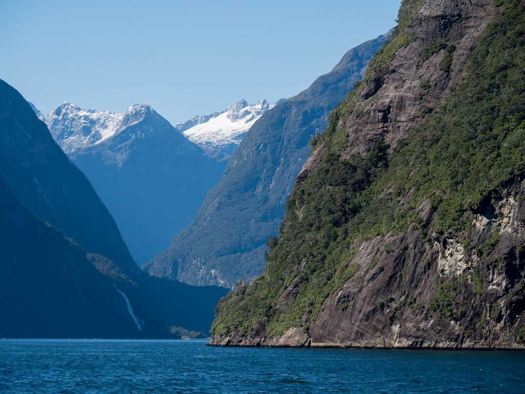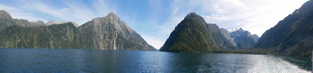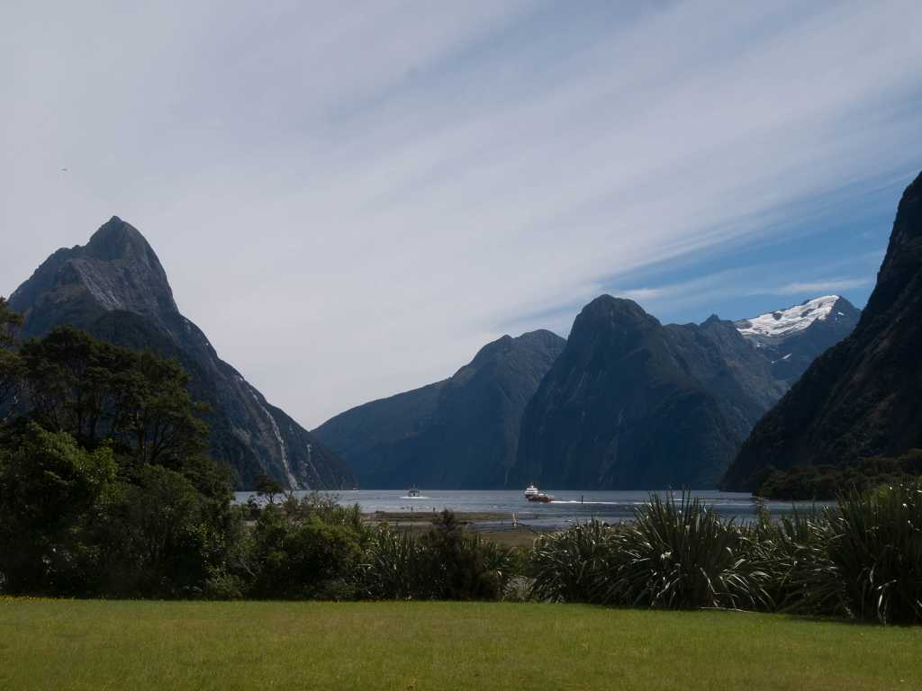 Die fast dreistündige Fahrt mit dem Motorsegler „Milford Wanderer“ führt durch den gesamten Sound bis zur „Tasmanischen See“. Der Fjord wird von über 1000 Meter hohen Felswänden umschlossen. Der markanteste Berg ist der „Mitre Peak“ (Bischofsmütze), er fällt fast senkrecht bis zur Wasseroberfläche ab.