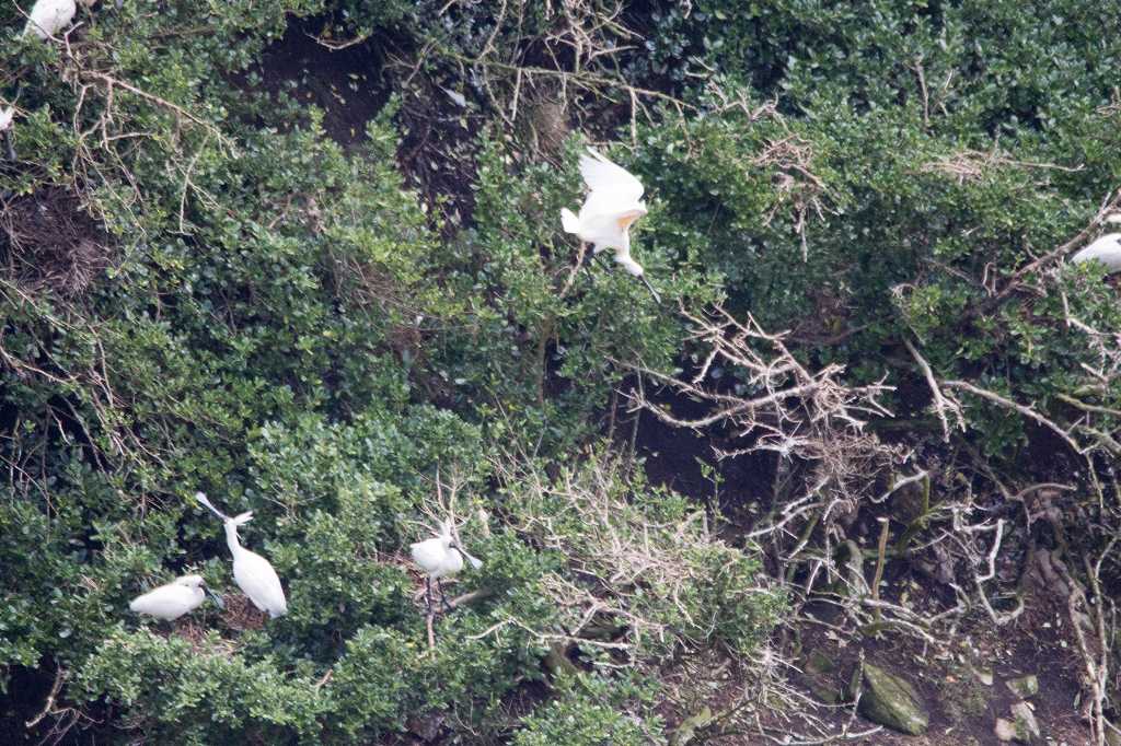 Die beiden Seiten des Pfades fallen steil zum Meer hinab und wir sehen Pelzrobben sowie Seebären auf den Felsplateaus dösen. Eine Gruppe schneeweißer Löffler hat es sich dort ebenfalls neben zahlreichen anderen Seevögel bequem gemacht. Mit dem Fernglas können wir Ihre merkwürdig geformten Schnäbel gut erkennen.