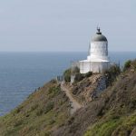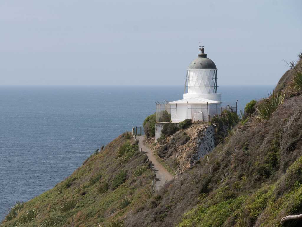 Der zunächst leicht abschüssige und dann ansteigende Weg führt bis zum Ende einer Landzunge, an deren Ende ein weißer Leuchtturm auf einem kleinen Felsen steht.