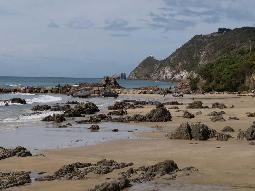 Wir verlassen Dunedin, das übrigens bereits in den Catlins liegt, bei Regen Richtung Süden und halten am „Nugget Point“. Nach dem Mittagessen klart der Himmel auf, so dass wir diese spektakuläre Landschaft sogar teilweise im Sonnenschein bewundern können.