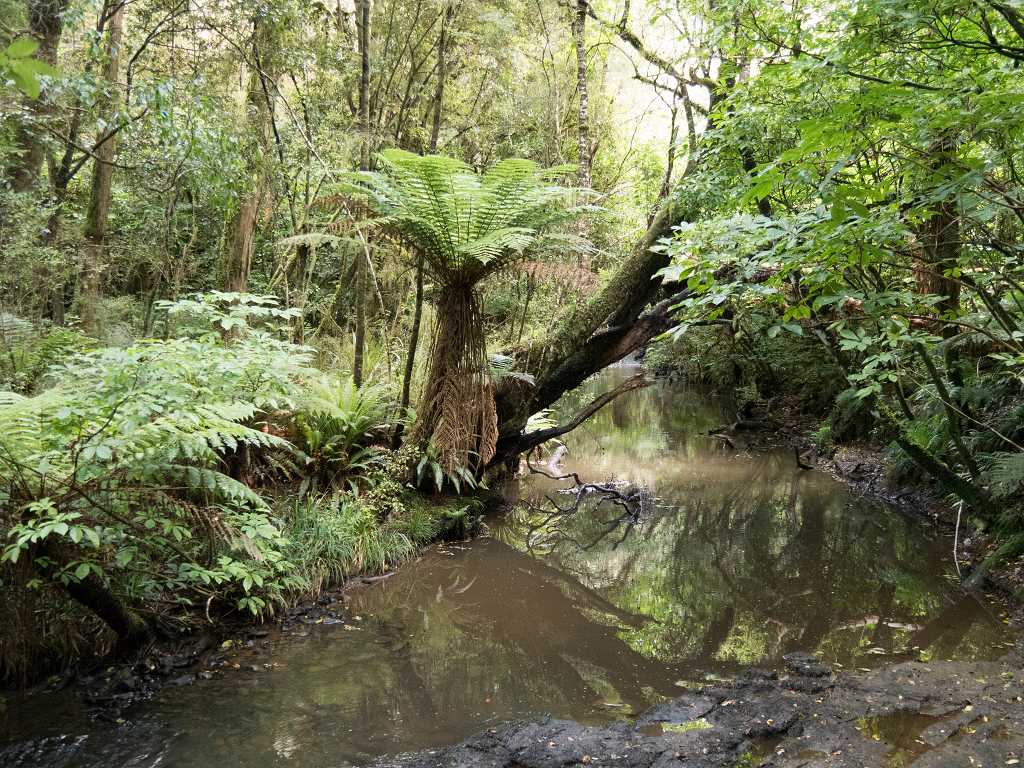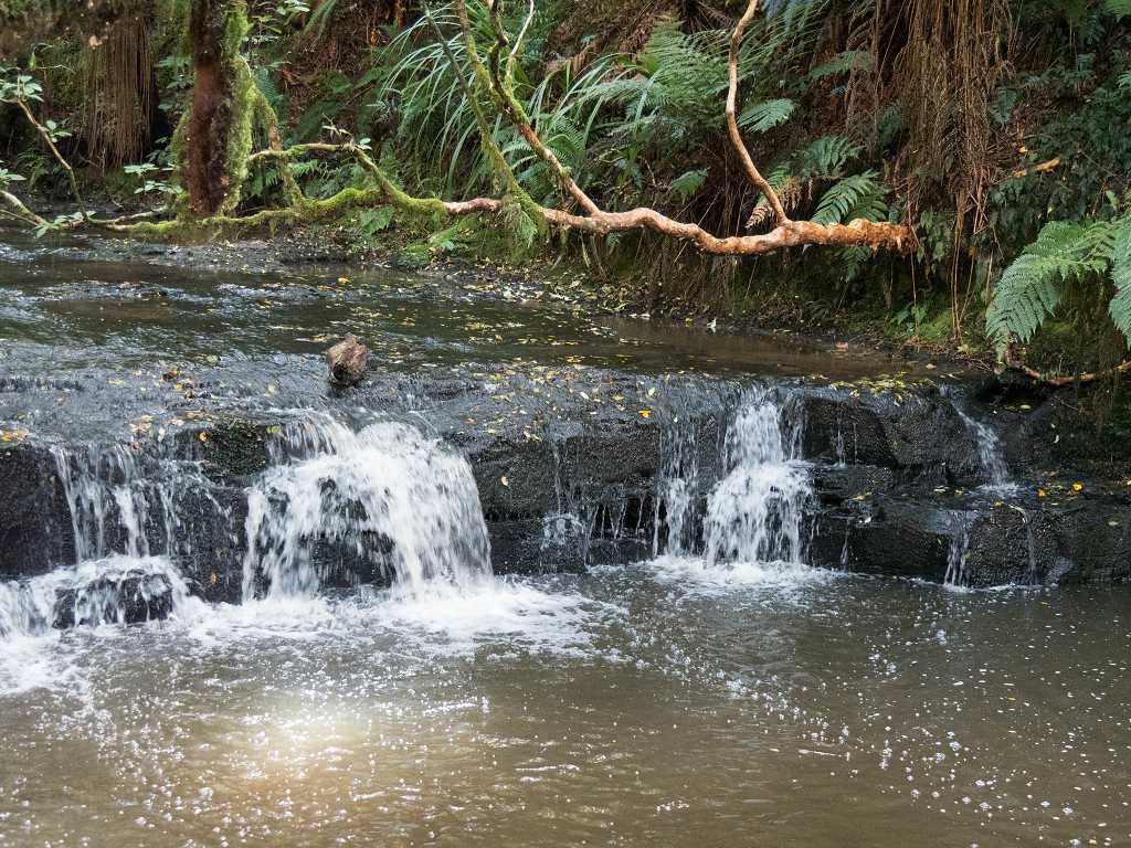 Zwei weitere Wasserfälle erreichen wir ebenfalls zu Fuß, den „Matai Falls“, dessen Wasser in Kaskaden über moosbedeckte Felsen fällt und die „Horseshoe Falls“. Beide sind durch wilden Native Forest zu erwandern.