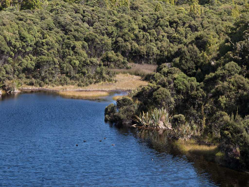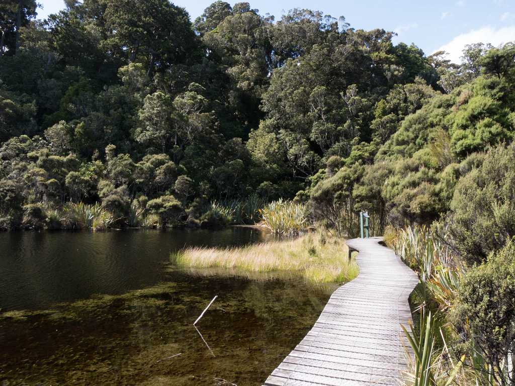 Ein letzter kleiner Rundwanderweg führt uns um den wunderschönen Moorsee „Lake Wilkie“. Hier leben auch winzig kleine Frösche, von nur 1,5 bis 2 cm Größe. Leider können wir keine entdecken…