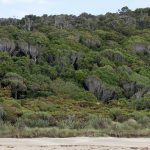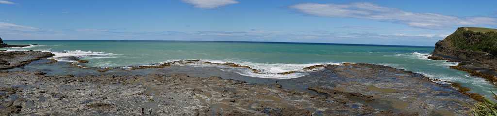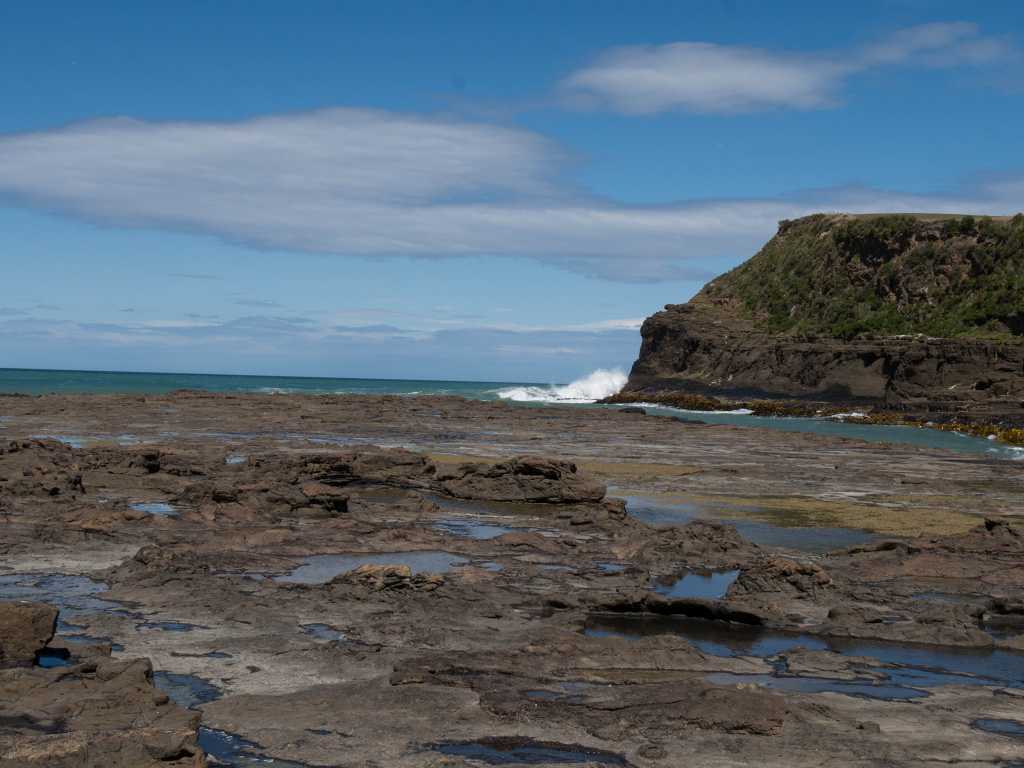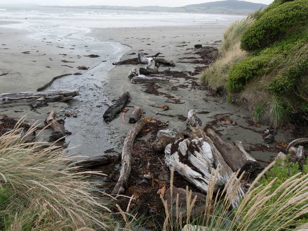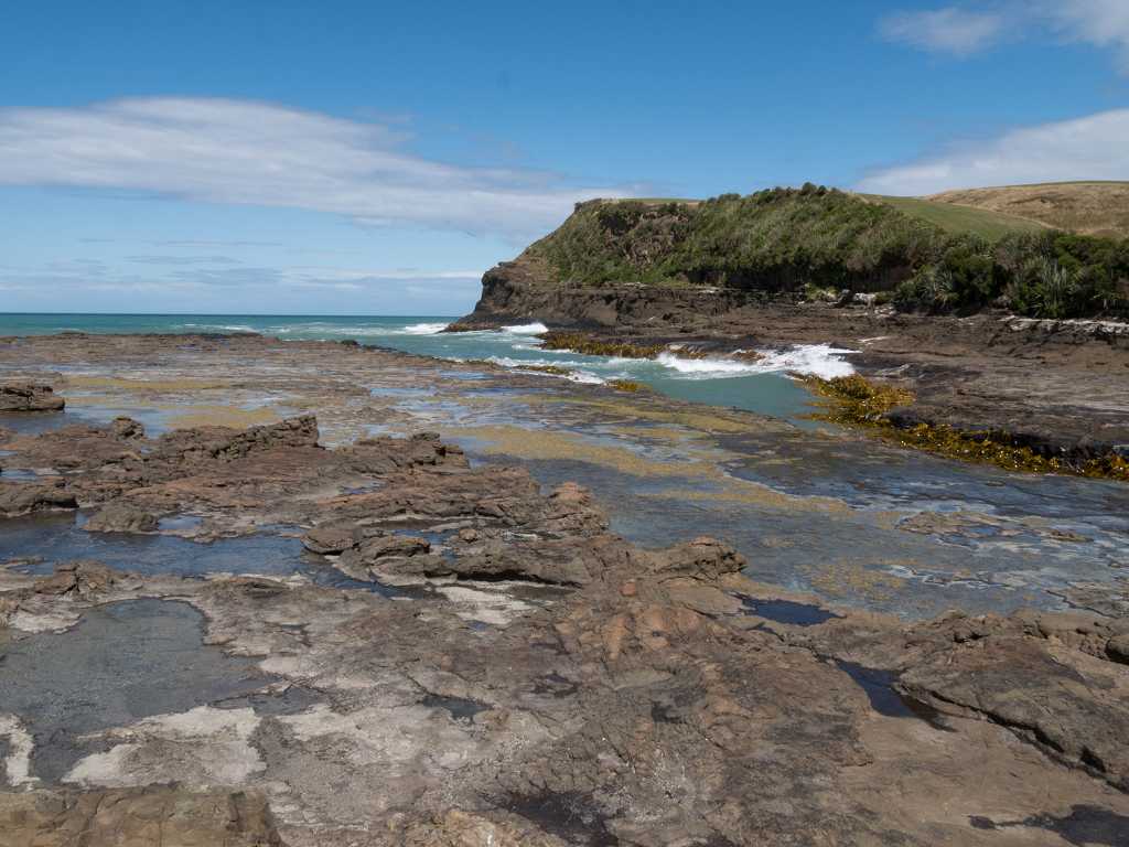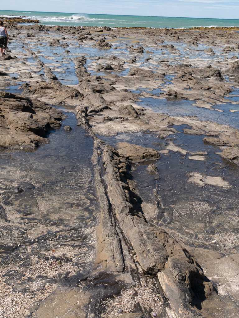Ein weiteres Highlight erwartet uns an der „Curio Bay“. Hier besteht der bei Ebbe freiliegende Meeresboden aus einem „Fossil Forest“. Ganz deutlich kann man die ehemaligen Bäume und Baumstümpfe erkennen, die im Laufe der Jahrmillionen zu Steinen geworden sind. Ein ergreifendes Gefühl kommt in uns auf, als wir diesen Küstenabschnitt betreten!