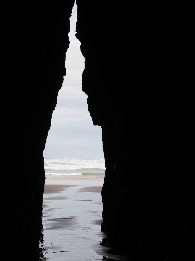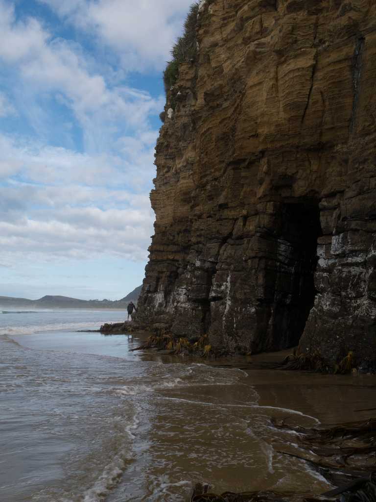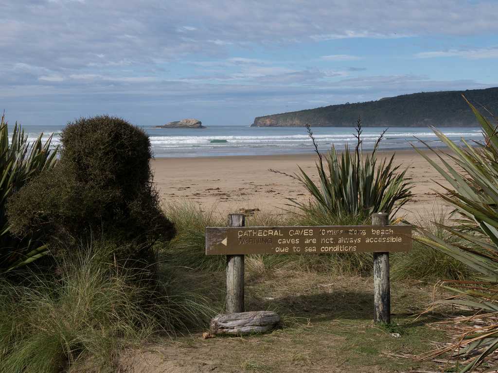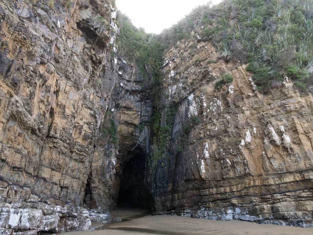 Am nächsten Tag starten wir zeitig, denn unser erstes Ziel ist nur bei Ebbe zu besichtigen. Die „Cathedral Caves“ ist ein System von insgesamt 15 Höhlen. Nur einige sind vom Strand aus zu begehen, mit Stirnlampe ausgerüstet begeben wir uns auf ihre Erkundung.