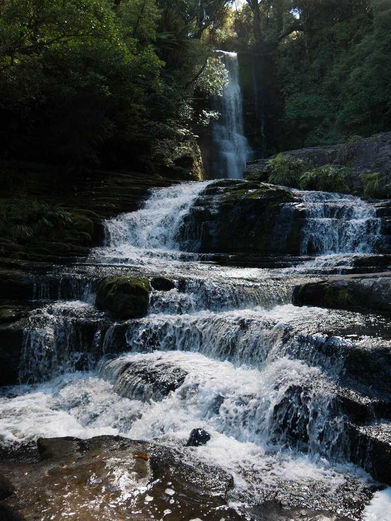 Über eine Schotterpiste ist der Parkplatz erreichbar, von dem aus wir zu den „Mc.Lean Falls“ wandern. Wieder geht es durch dichten Regenwald, dem Flusslauf folgend hinauf zu den insgesamt 100 Meter hohen Wasserfällen. In fünf Stufen fließt das Wasser mit einem beeindruckenden Spektakel nach unten, um dann für eine verwunschene märchenhaft anmutende Vegetation in Ufernähe zu sorgen!