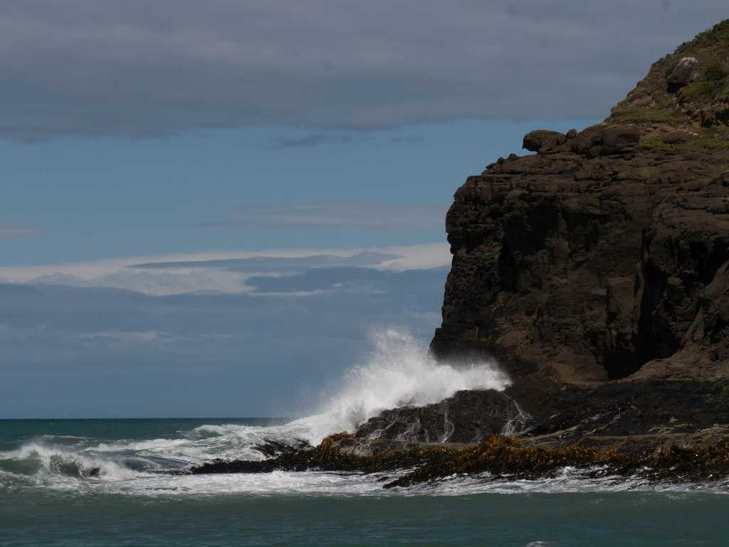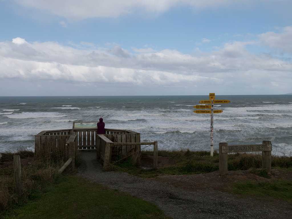 Am „Mc Crackens Rest“ Lookout setzen wir uns den Gewalten der Natur aus und bestaunen die meterhohen Wellen, die vom Sturm an den Strand gepeitscht werden.