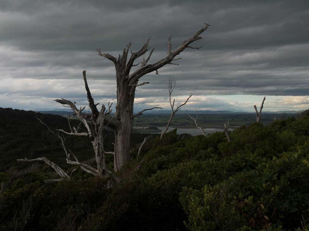 Windschiefe Bäume zeugen von den dauerhaften Stürmen, die an diesem Küstenabschnitt toben. Auch wir kommen in diesen „Genuss“, der Wind pfeift heftig um unsere Nasen.