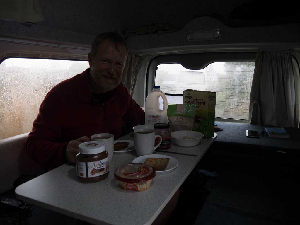 Am Nachmittag und Abend genießen wir die Wärme die unser Heizgerät hinaus bläst und am nächsten Morgen schlafen wir länger, denn leichter Nieselregen lähmt unser Verlangen aufzustehen.