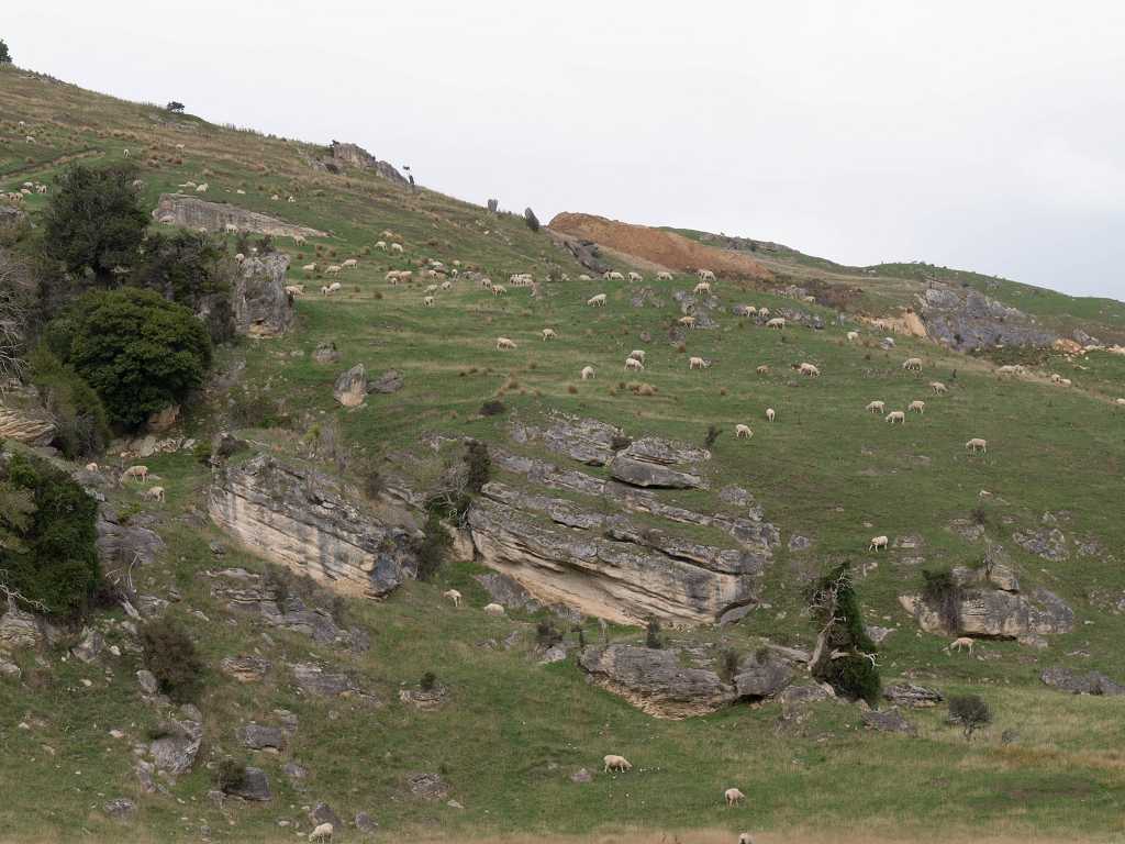 Wir fahren heute noch bis Mossburn, wo wir auf einer Farm „Country Park“ in guter Gesellschaft von Schafen, Kühen, Ziegen, Hühnern und Alpakas übernachten.