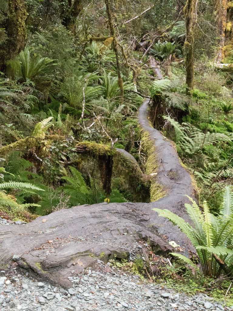 Nach wenigen Kilometern erreichen wir schon unseren nächsten Abstecher, der uns nun aber in dichten Regenwald führt.