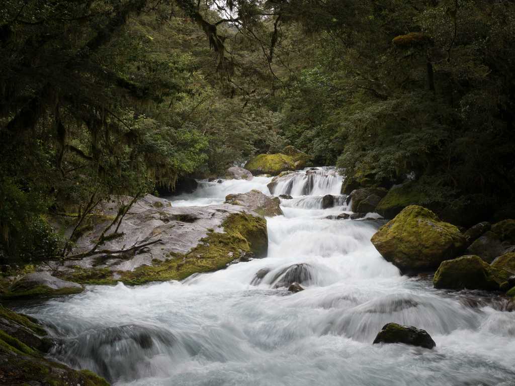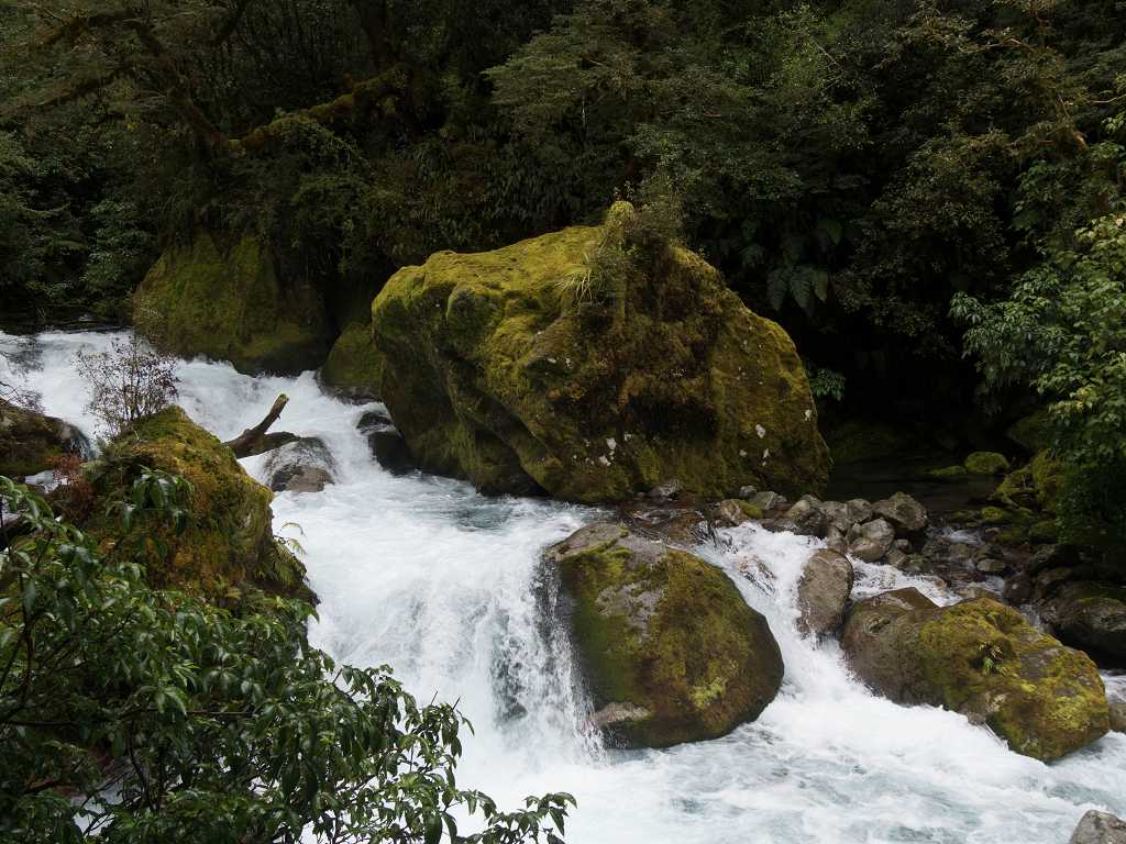 Die Fahrt zum Milford Sound ist kurvenreich und führt durch saftig grüne, bewaldete alpine Landschaft, die uns sehr an Norwegen erinnert. Spektakuläre Wasserfälle geben bereits einen Vorgeschmack auf unsere heutige Wanderung. Und wir sind vom Glück gesegnet, der Regen lässt nach!