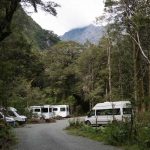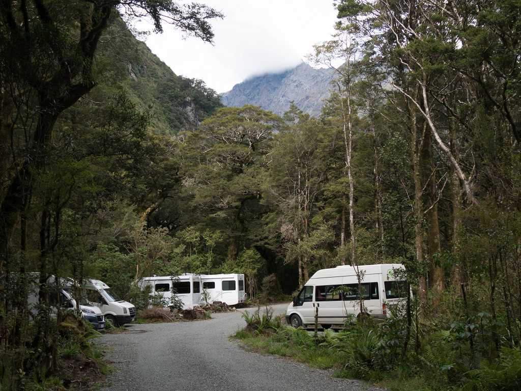 Kurz darauf checken wir in den bis jetzt spektakulärsten Campingplatz unserer Reise ein. Die „Milford Sound Lodge“ liegt von allen Seiten eingerahmt durch steile Felswände und sehenswert bepflanzt mit knorrigen Bäumen. Jeder Stellplatz ist durch Bepflanzung abgegrenzt, die Anlage sehr gepflegt.