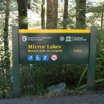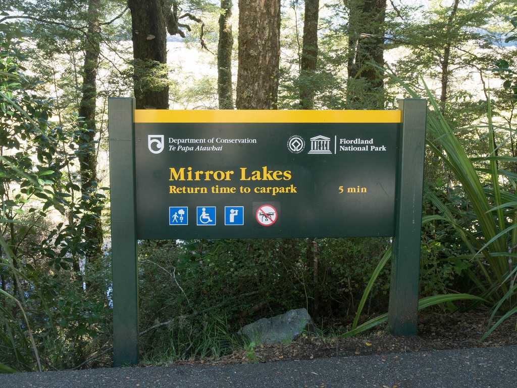 Ein kurzer Stopp am „Lake Mirror“ erweist sich als kleine Enttäuschung, denn es ist zu windig, so dass sich die Wellen auf der Wasseroberfläche kräuseln und nicht das erhoffte Spiegelbild des Berges freigibt.