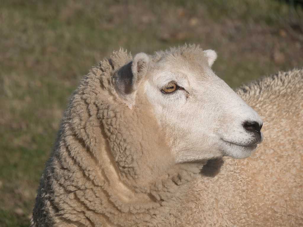 Auf dem Rückweg zur asphaltierten Straße kreuzen Schafe den Weg und hindern uns und den Gegenverkehr für einige Zeit am Weiterfahren. Etwa 10 Tiere haben sich aus der Umzäunung befreien können und finden nun nicht mehr den Eingang in die rettende Weide! Sie rennen voll in Panik von links nach rechts und wieder zurück, müssen dabei eine kleine Böschung rechts hoch und links nach unten erklimmen.