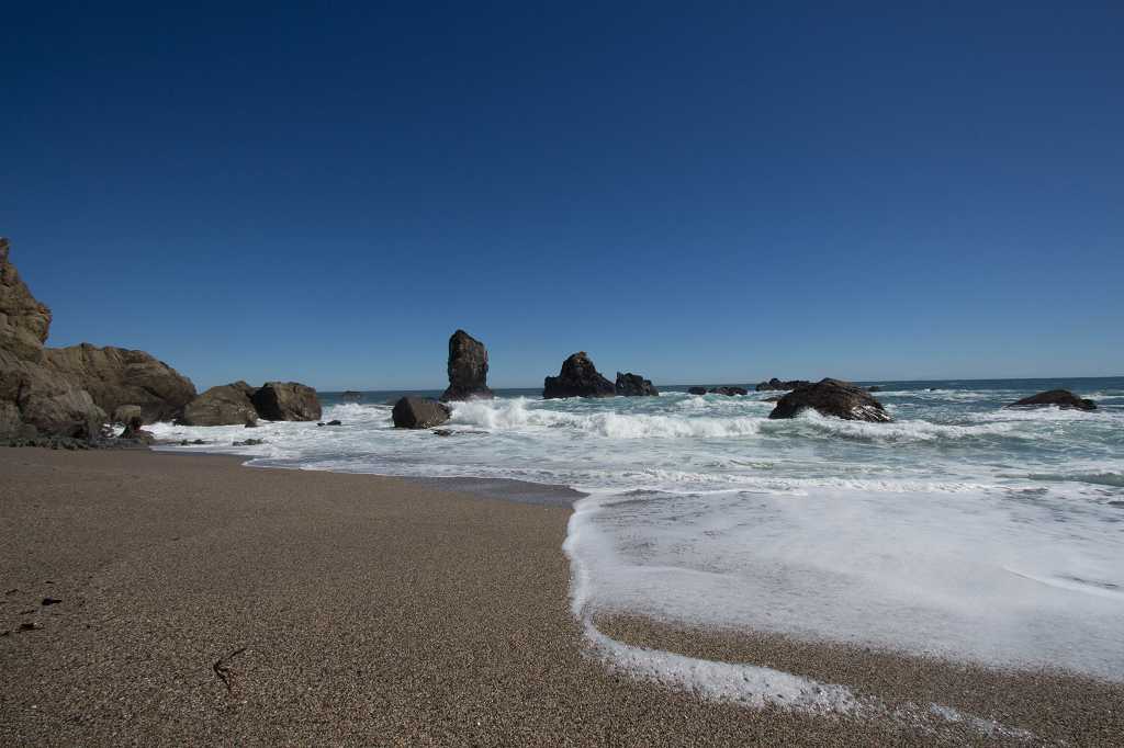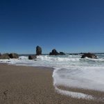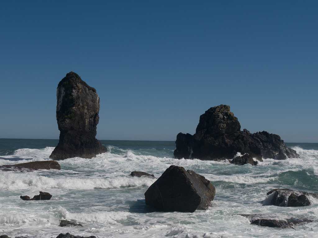 Am „Knights Point“ halten wir nur kurz, das Meer umspült hier schroffe Felsen, die vereinzelt herausragen.