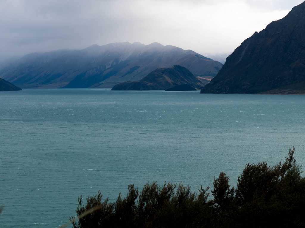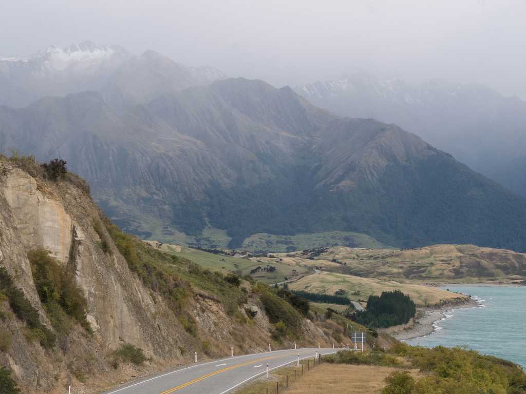 An diesem verregneten Tag nach der Gipfelwanderung verlassen wir das Seengebiet und wenden uns Westland zu. Vorbei am „Lake Wanaka“ im Westen und „Lake Hawea“ im Osten, geht es anschließend über den „Haast Pass“ hinunter zur Westküste bis nach Haast.