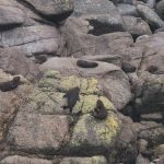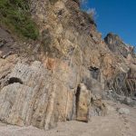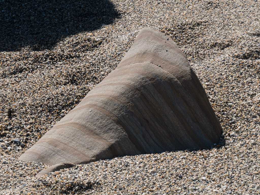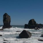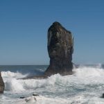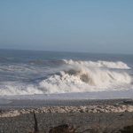 Es ist gerade Ebbe, die Wellen schlagen bereits jetzt relativ heftig und sehenswert in ein ausgespültes großes Steinbecken. Bei Flut kann man an dieser Stelle die Gischt in Fontänen zwischen den „Pfannkuchen-Felsen“ hoch spritzen sehen