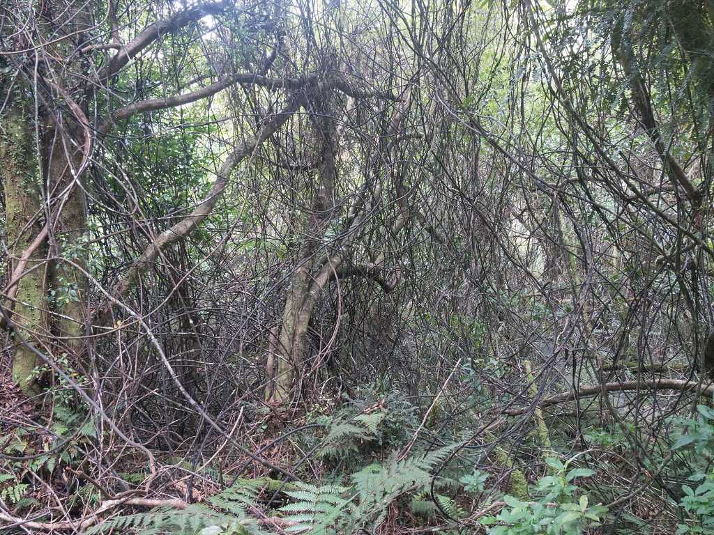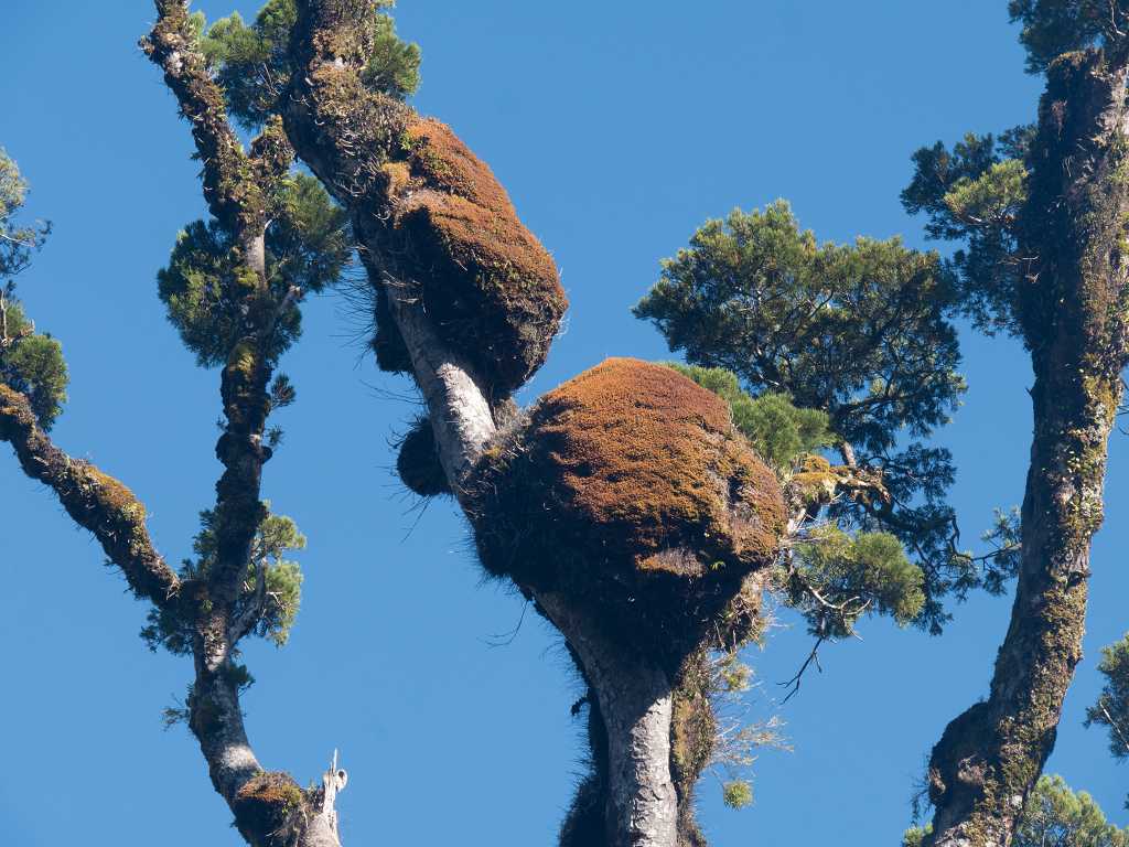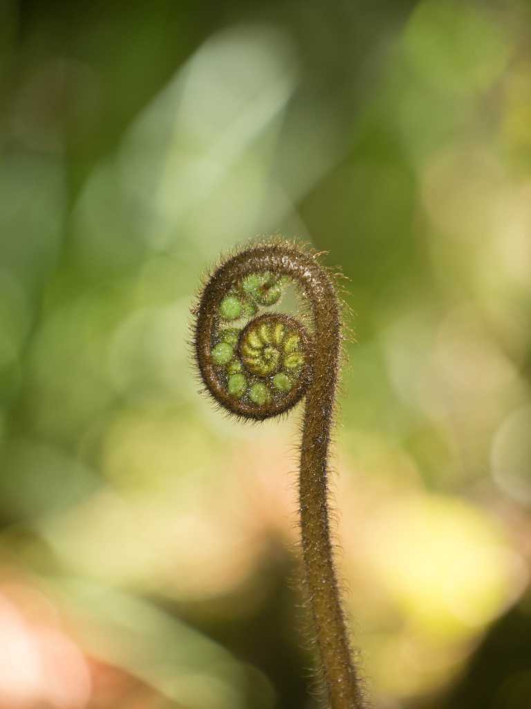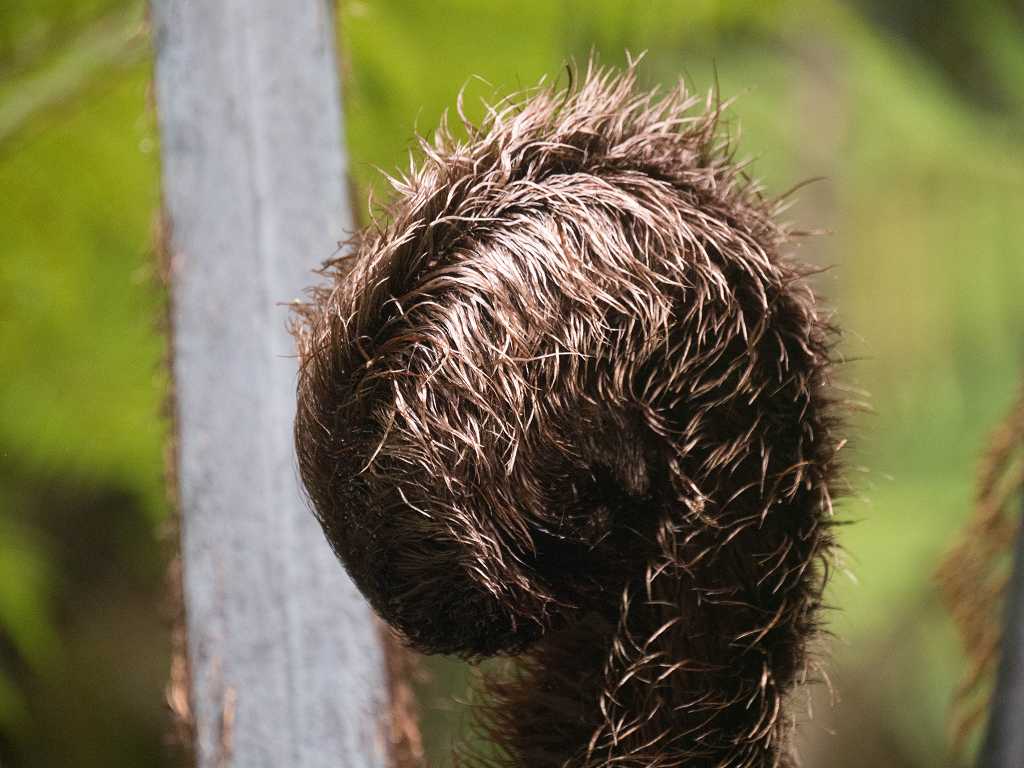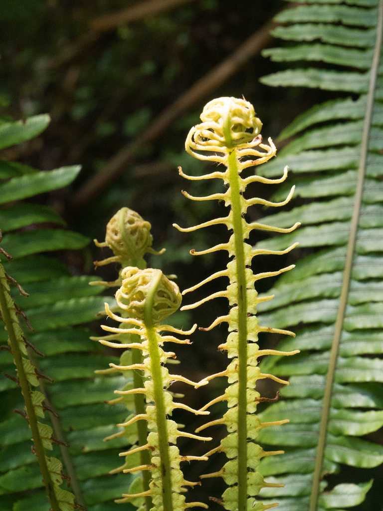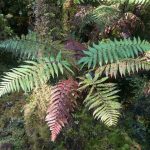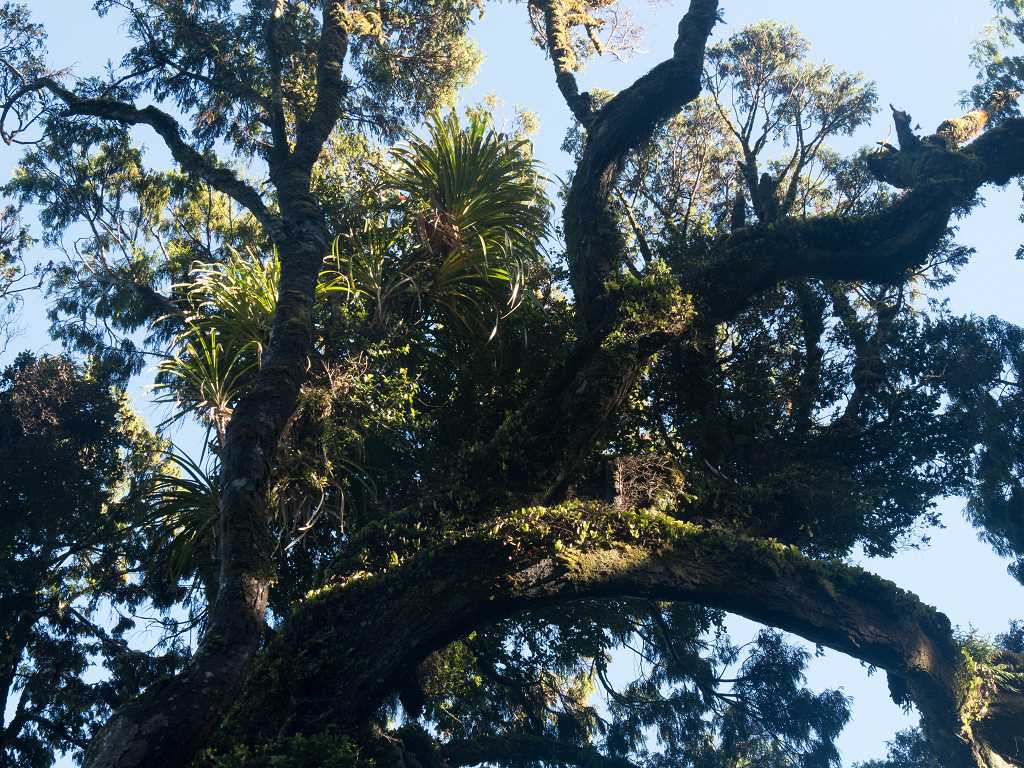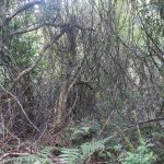 Direkt hinter dem Strand tauchen wir sofort in dichten Regenwald ein. Zahlreiche Baumfarne, moosbewachsenen Bäume mit Lianen und verschiedenste andere Feuchtigkeit liebende Pflanzen gehen hier eine chaotische Symbiose ein, um sich am Leben zu erhalten.
