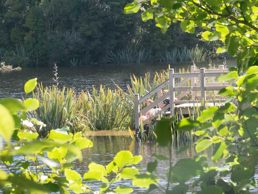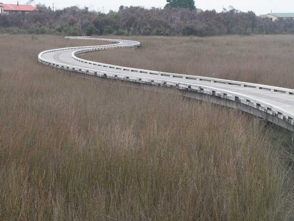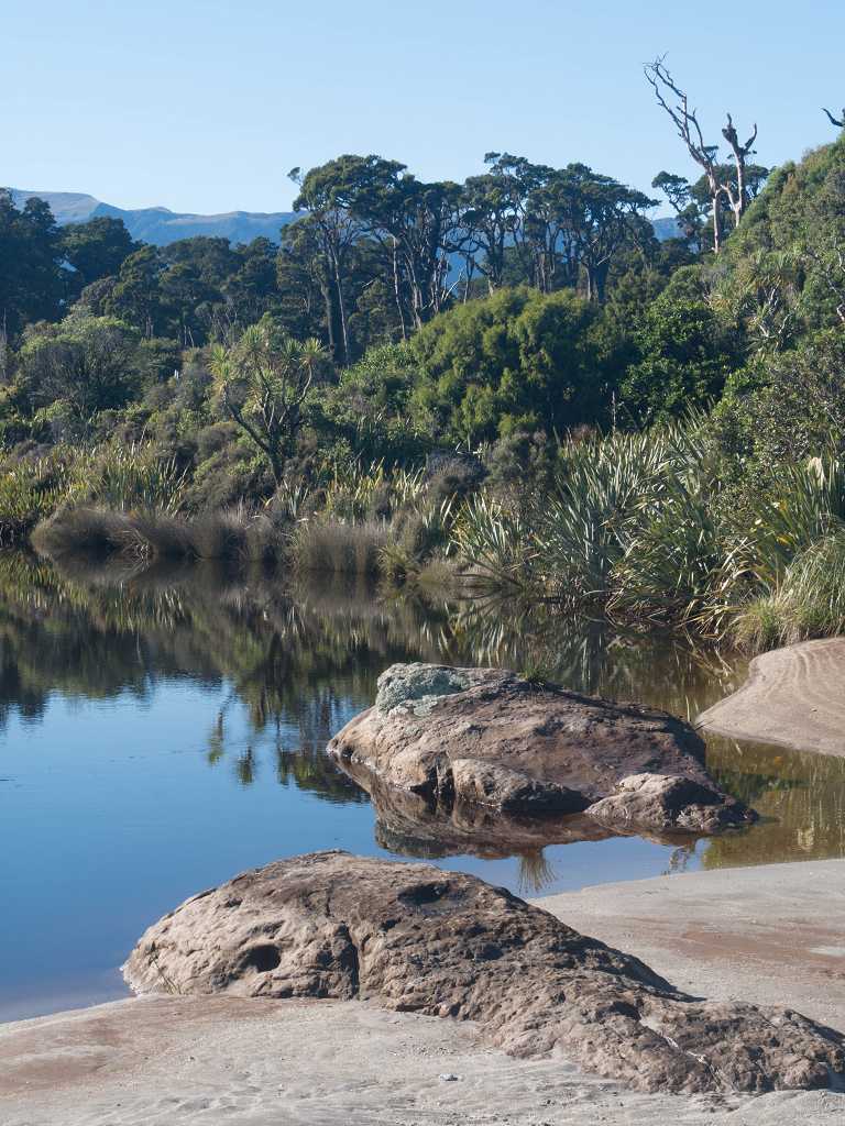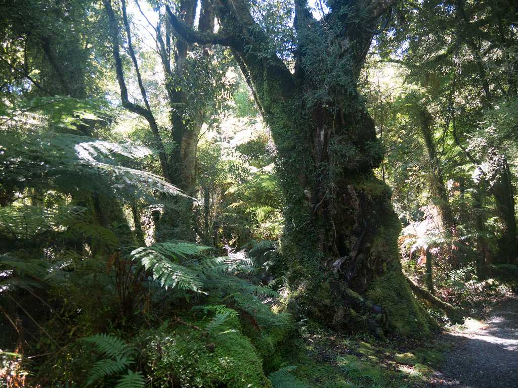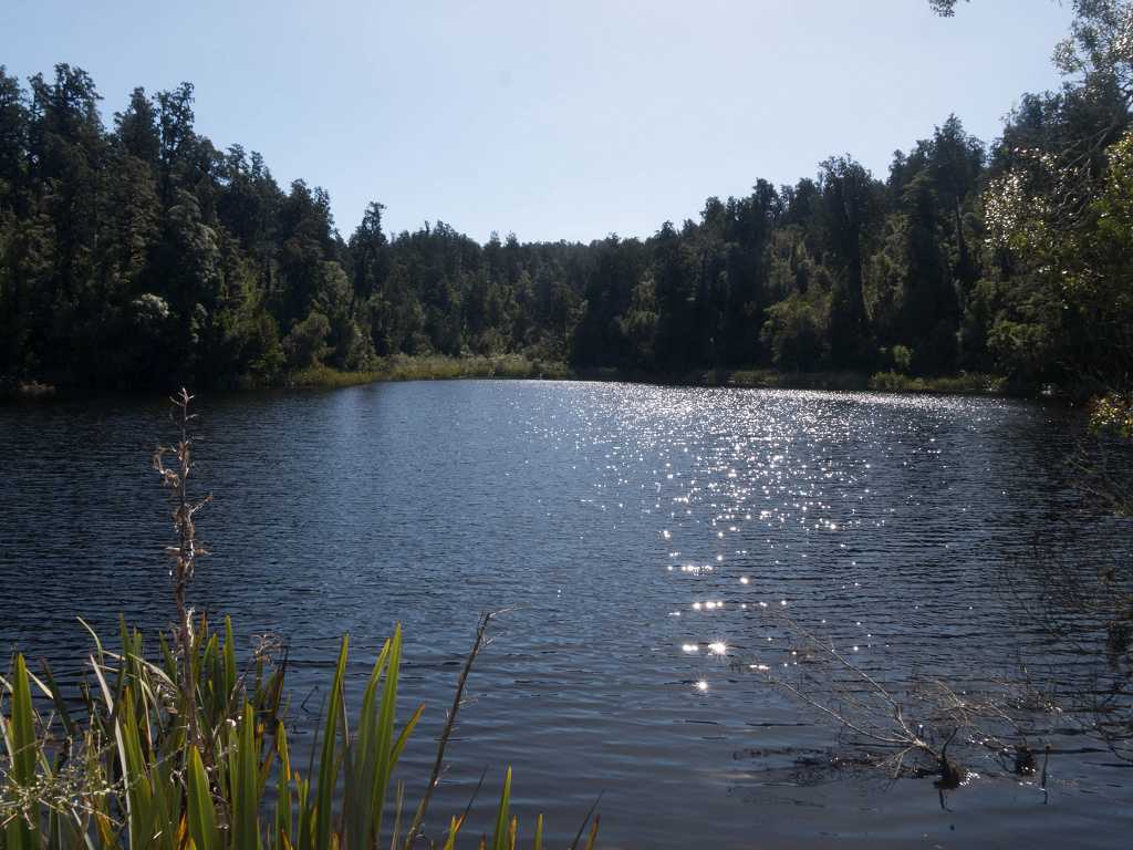 Die zweite Wanderung „Kahikatea Swamp Forest Walk“ führt uns entlang des Flüsschen „Ship Creek“ flussaufwärts durch Sumpfland und Kahikatea Wald. Besonders eindrucksvoll ist die hohe Luftfeuchtigkeit im Licht der Sonne zu beobachten, tausende winziger Wassertröpfchen wirbeln durch die Lüfte.