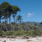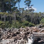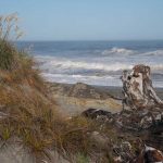 Die erste Wanderung, „Mataketake Dune Lake Walk“, verläuft zuerst in Strandnähe, wir sehen vom Meer angespülte Baumstümpfe, die das Ufer säumen und etwas Mystisches an sich haben.