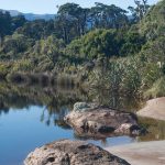 Bei „Ship Creek“ unternehmen wir zwei kurze Wanderungen. Von diesem Aussichtspunkt an der „Tasmanischen See“ können wir das Rauschen des Meeres und die beindruckend hohen Wellen auf uns wirken lassen.