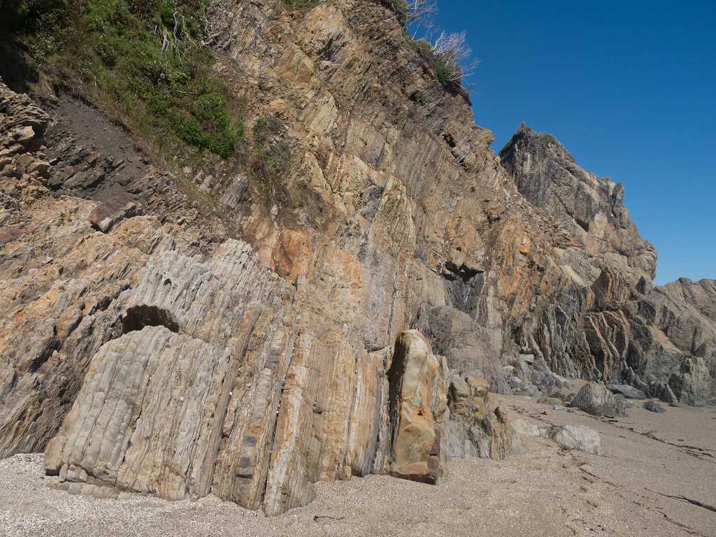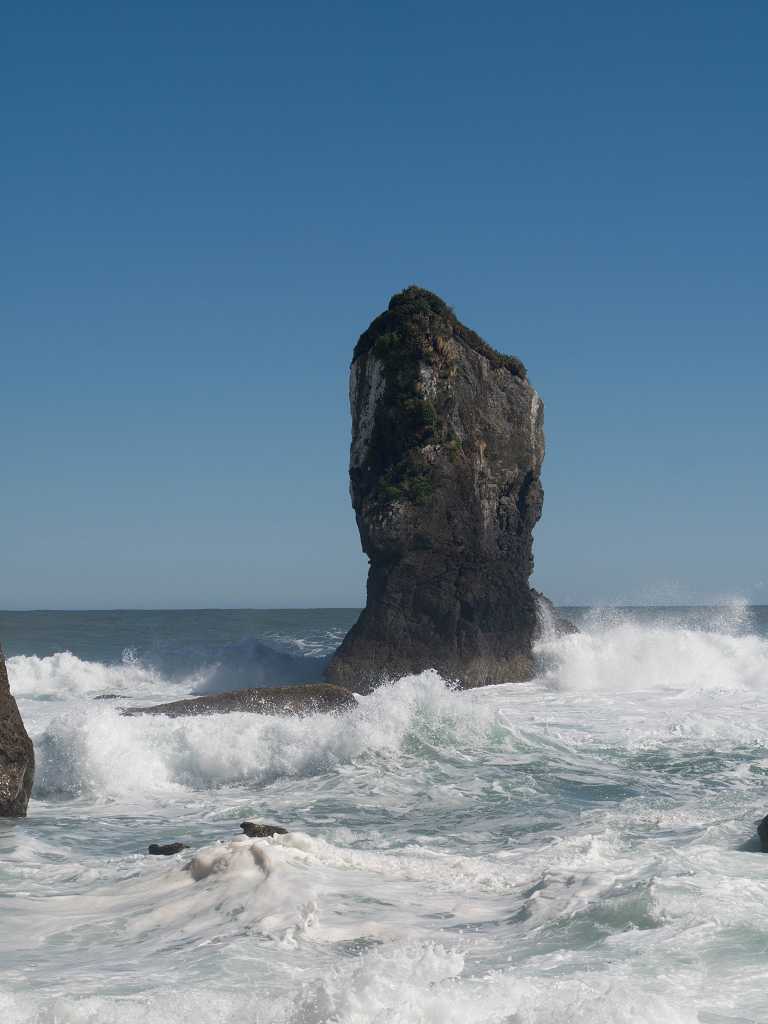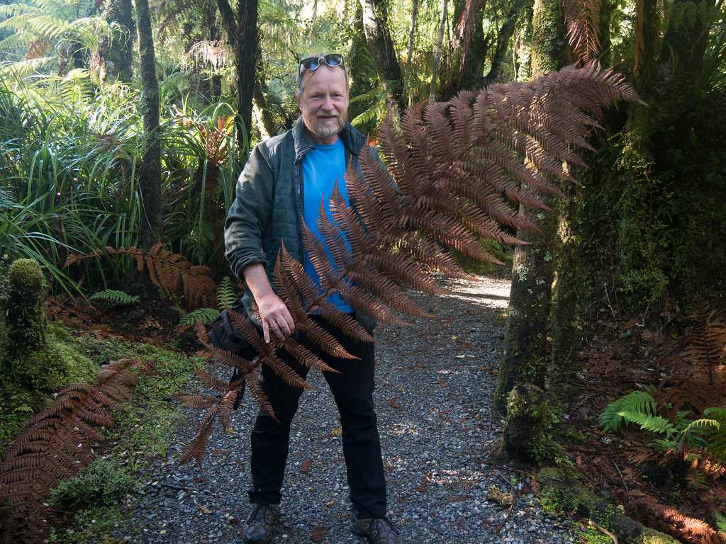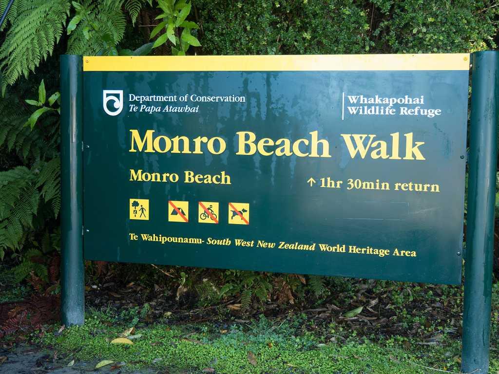 Ein weiters Mal verbinden wir heute Regenwald und Meer miteinander. Der „Monro Beach Walk“ geleitet uns 2,5 km durch zauberhaften Regenwald mit uralten Kahikatea Baumriesen und Farnen in allen Größen, bis zum Strand. Im Dickicht in Ufernähe könnte man mit etwas Glück im Februar Dickschnabelpinguine beobachten, die zur Mauser aus dem Meer an Land kommen. Wir sehen zwar keine Pinguine, sind aber trotzdem glücklich!