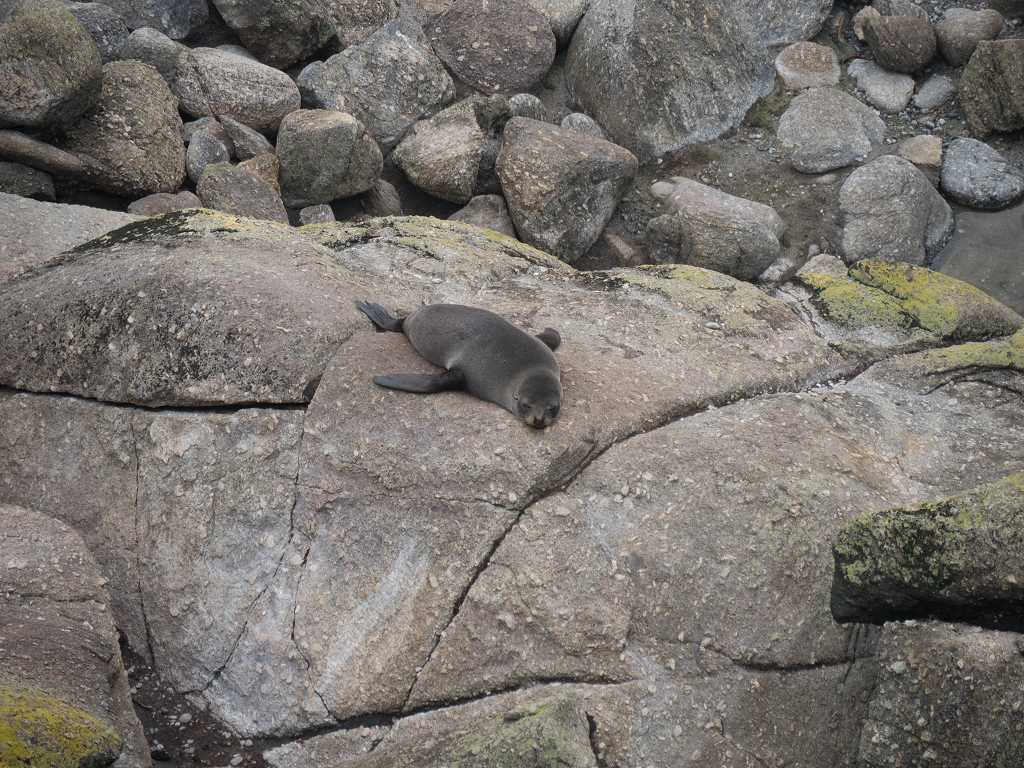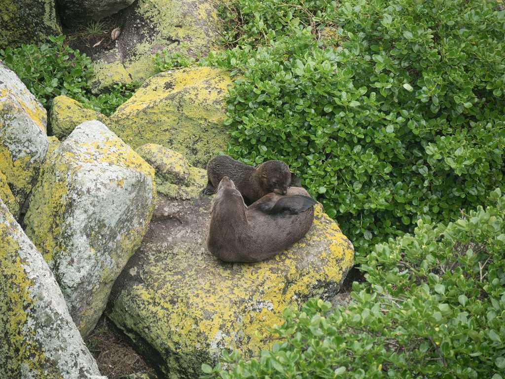 Danach geht es noch 60 km weiter zum „Cape Foulwind“, Der Name ist darauf zurückzuführen, weil hier James Cook mit seinem Schiff „Endeavour“ wegen einer Windflaute einige Zeit herum dümpelte. Hier spazieren wir jetzt gemütlich zur „Tauranga Bay Seal Colony“ und beobachten die Robben mit ihren zahlreichen Jungtieren.
