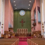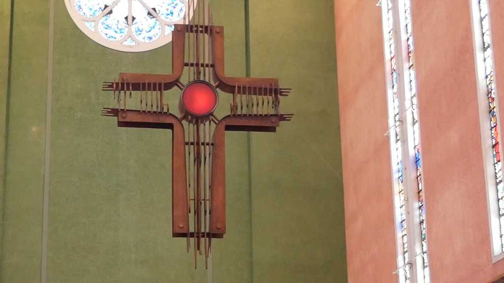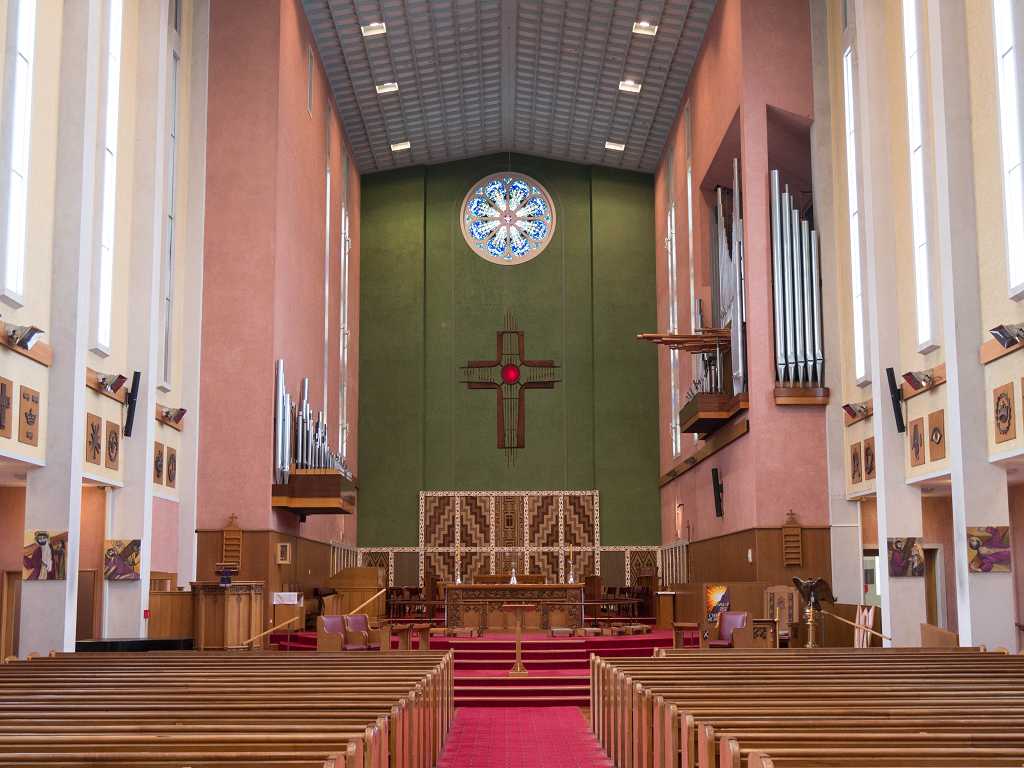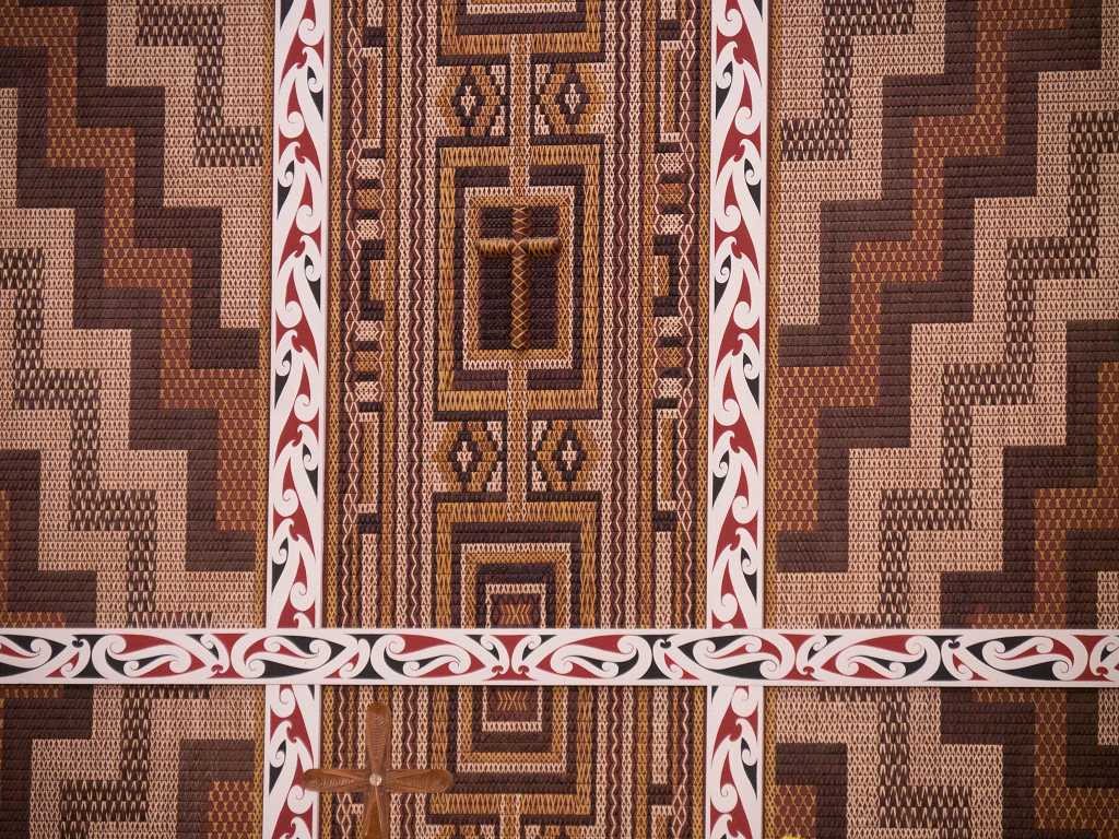 Besonders auffällig ist die Wandpaneele hinter dem Altar. Jedes Panel wurde von Frauen eines anderen Maori-Stammesgebietes gewebt und spiegeln Aspekte des christlichen Glaubens und der Maori Kultur.