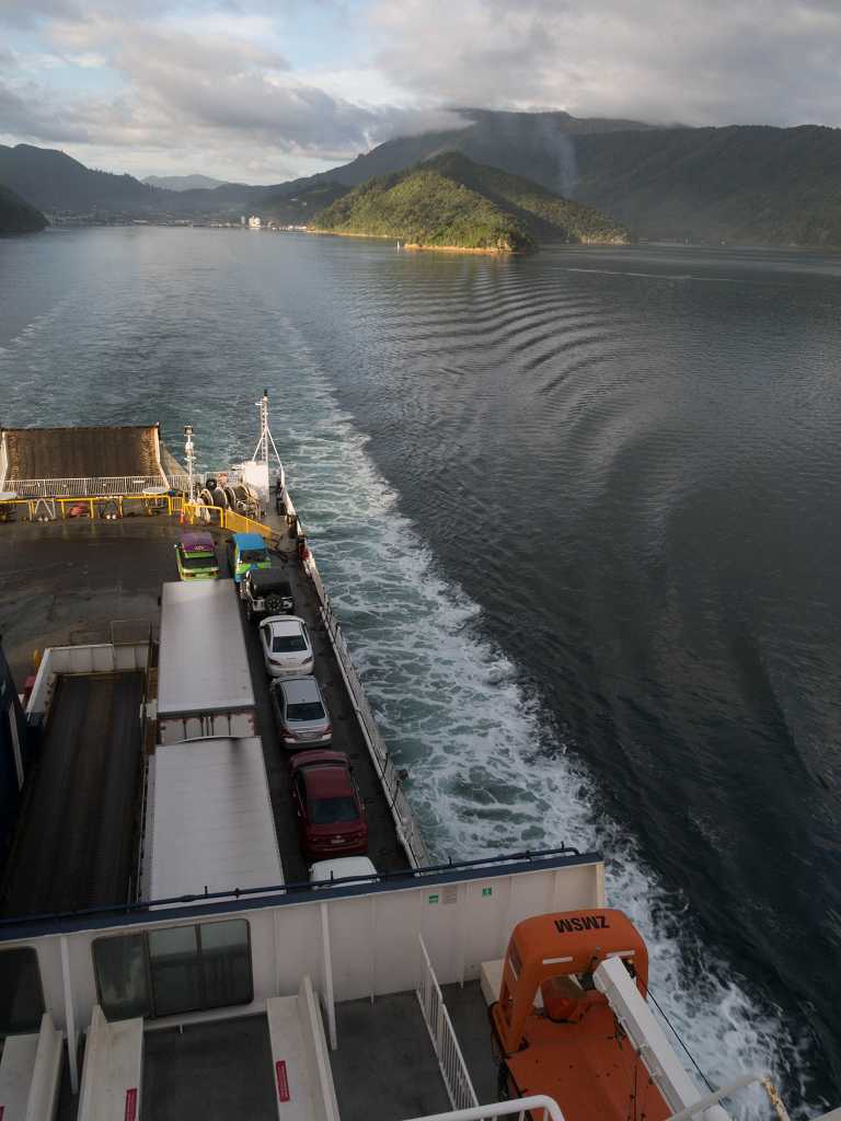 Bei herrlichem Sonnenschein verlassen wir über den „Marlborough Sound“ mit einer Fähre von „Bluebridge“ nun die Südinsel, durchfahren die „Cook Strait“ und gehen (fahren) auf der Nordinsel in Wellington wieder an Land.