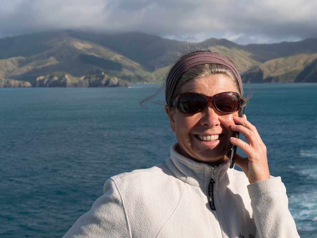 Am Oberdeck der Fähre stehend telefoniere ich mit unserer Tochter in Herzogenaurach! Wie klein ist doch die Welt durch die Technik geworden! Ich genieße diese Möglichkeit, so immer mal persönlichen Kontakt zu den Kindern zu haben.