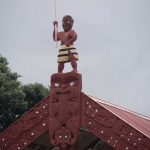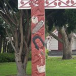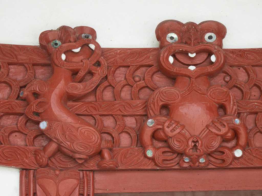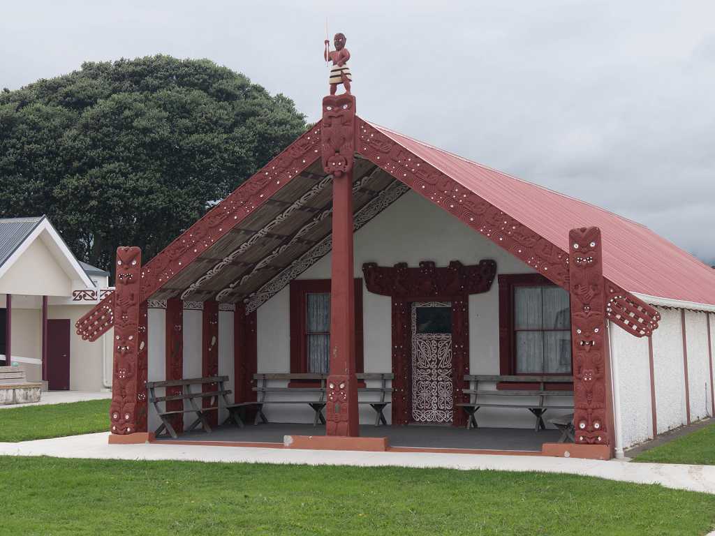 Also verlassen wir Wellington am Morgen und fahren zuerst den SH 1 an der Westküste entlang bis Otaki. Das Versammlungshaus der Maori ist eingezäunt und die Tür verschlossen. Etwas enttäuscht gehen wir weiter. Später entdeckt Thomas doch noch einen Zugang und wird von einem zufällig vorbei kommenden Maori-Mann ermutigt, sich alles in Ruhe anzuschauen. Eine sehr nette Begebenheit. Schade, dass ich sie verpasst habe, denn ich war auf dem „Örtchen“.