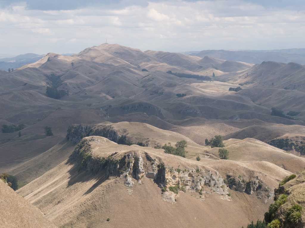 Hier bietet sich uns eine Alternativwanderung an. Wir laufen von einem unteren Parkplatz hinauf zum „Te Mata Peak“ und genießen den wunderschönen Ausblick – weit und breit hügeliges Grasland.