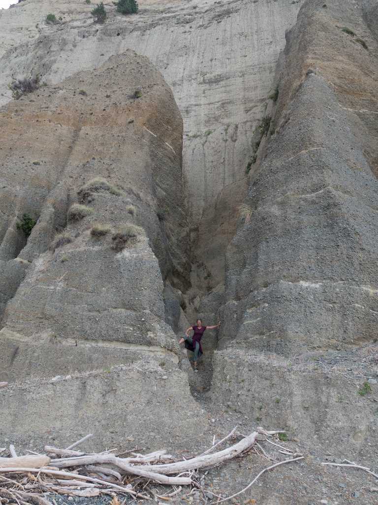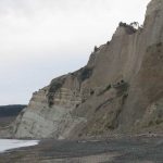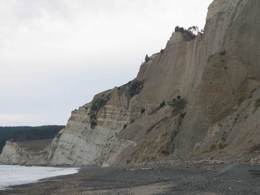 Natürlich laufen wir gleich noch die beeindruckende Steilküste am Strand entlang, dabei immer die bereits kommende Flut im Auge behaltend. Es beginnt zu regnen als wir am Campingplatz zurück sind.