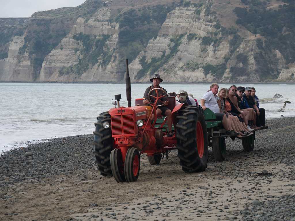 Eine besondere Naturatraktion, die wir uns nicht entgehen lassen möchten. Es gibt einmal täglich eine Tour zu buchen, dabei zieht ein Traktor die Besucher auf einem Anhänger sitzend über den Strand an der spektakulären Steilküste entlang und bringt sie zur Tierbeobachtung zum Cape.