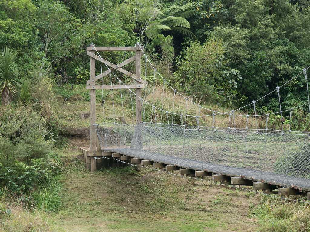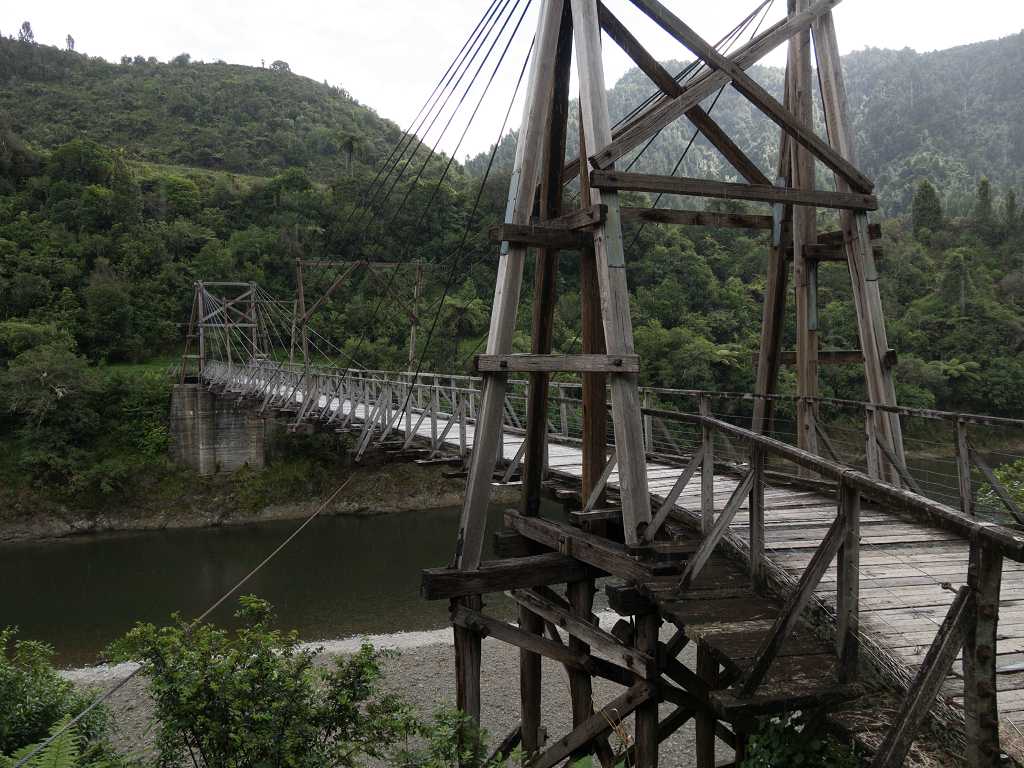 Nach einiger Zeit erreichen wir Tangoio und nutzen die Gelegenheit für eine 40 minütige Wanderung zu den „Tangoio Falls“. Vom Parkplatz laufen wir zuerst über eine Hängebrücke und folgen dann dem sehr schönen Wanderweg durch dichten Natur Forest nach oben zum Wasserfall.