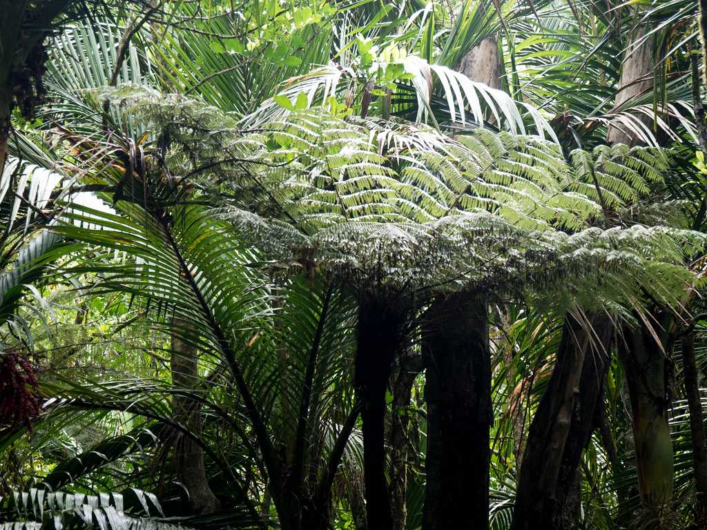 Was uns an dieser Stelle besonders auffällt ist die Tatsache, dass hier riesige Palmen und Baumfarne dicht beieinander gedeihen!