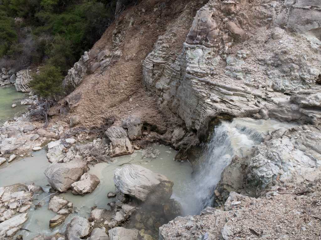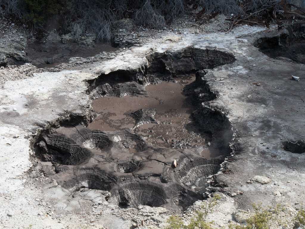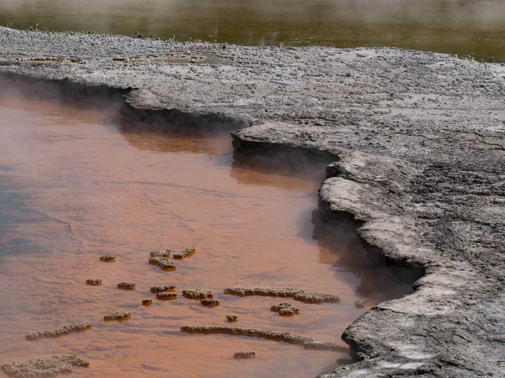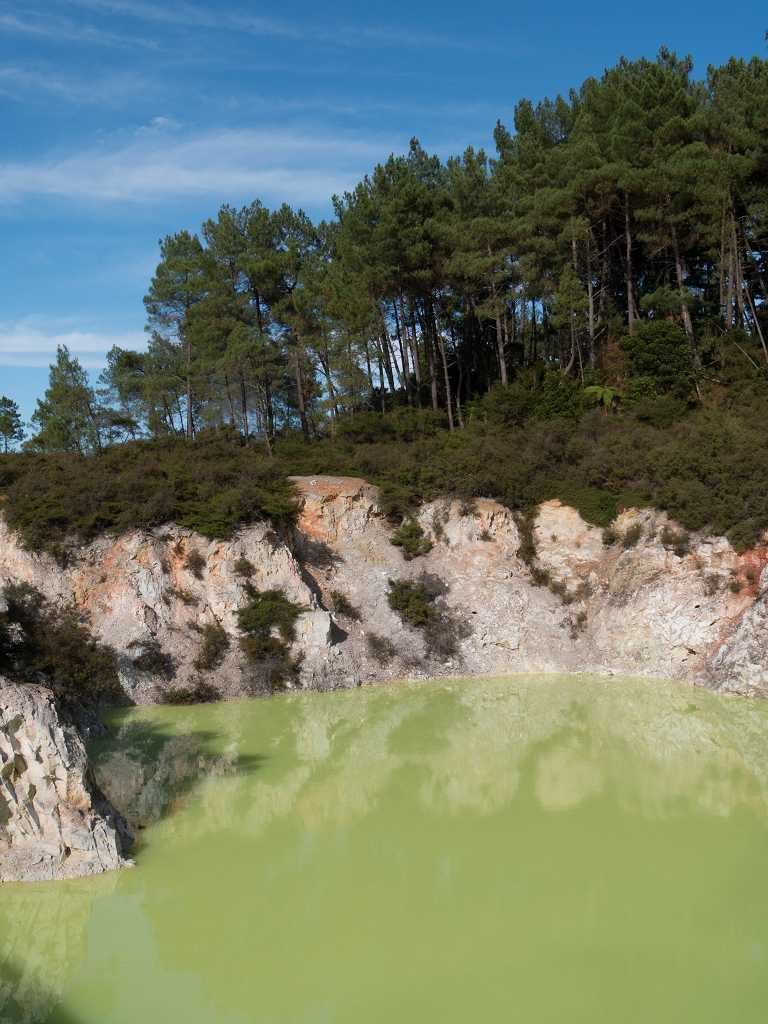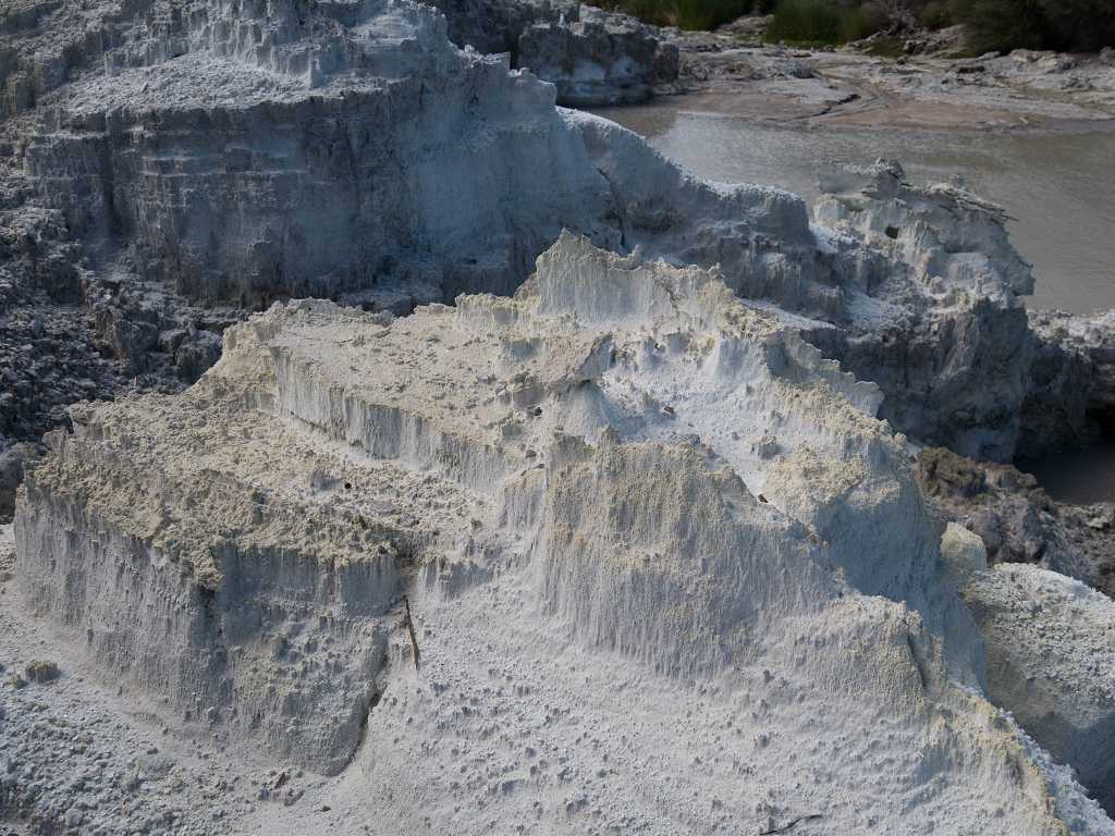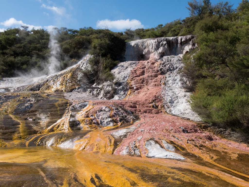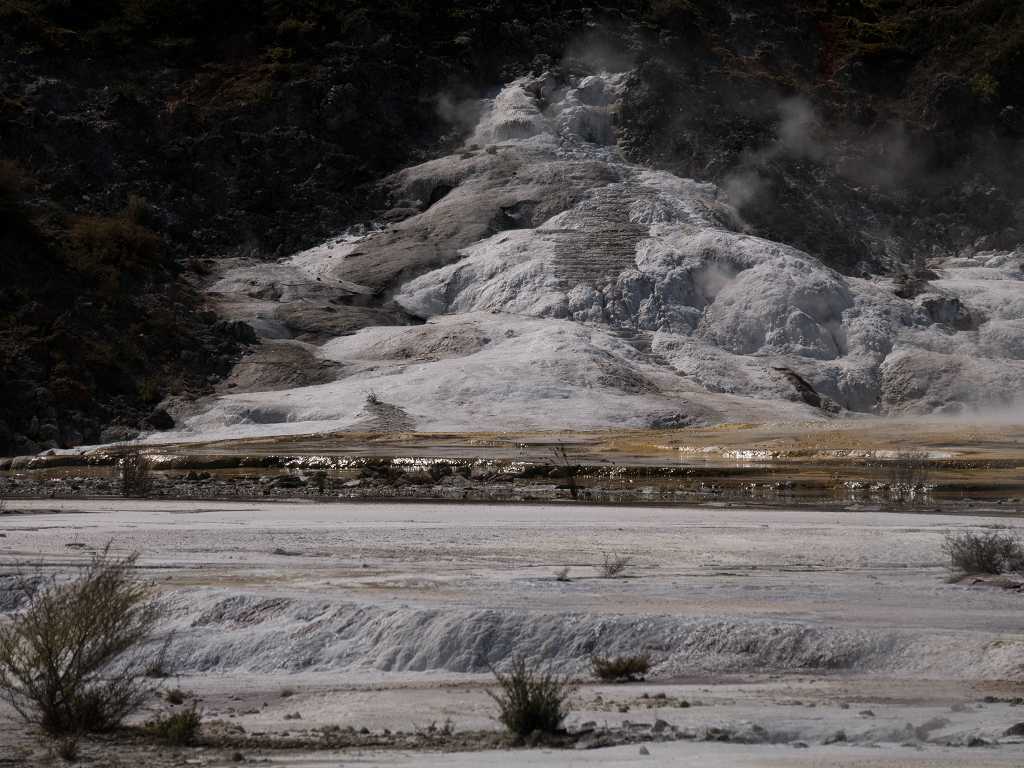 Fälschlicherweise könnte man annehmen, es sei ein erstarrtes Lavafeld. In Wirklichkeit handelt es sich aber um Neuseelands größte Sinterterrassen. Sie sind stellenweise zwischen 20 mm und 20 m dick und reichen bis 35 m unter die Seeoberfläche!