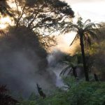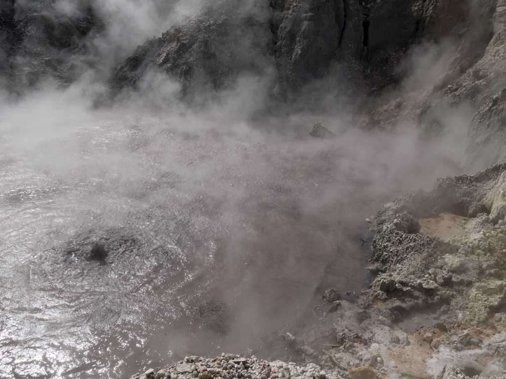 Wir sind bereits sehr zeitig dort und beginnen erwartungsvoll unseren Rundgang. Allerdings müssen wir feststellen, nicht immer fängt der frühe Vogel den Wurm, denn wir können fast nichts sehen, weil die Dampfschwaden aus den heißen Quellen am Morgen viel stärker sind.