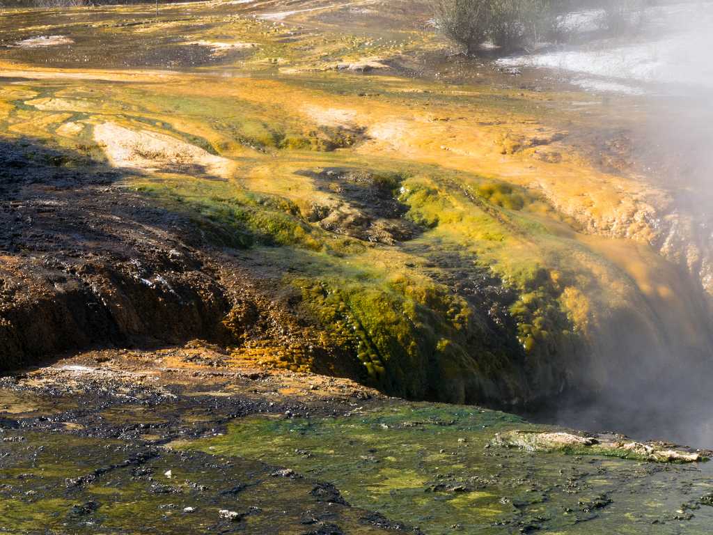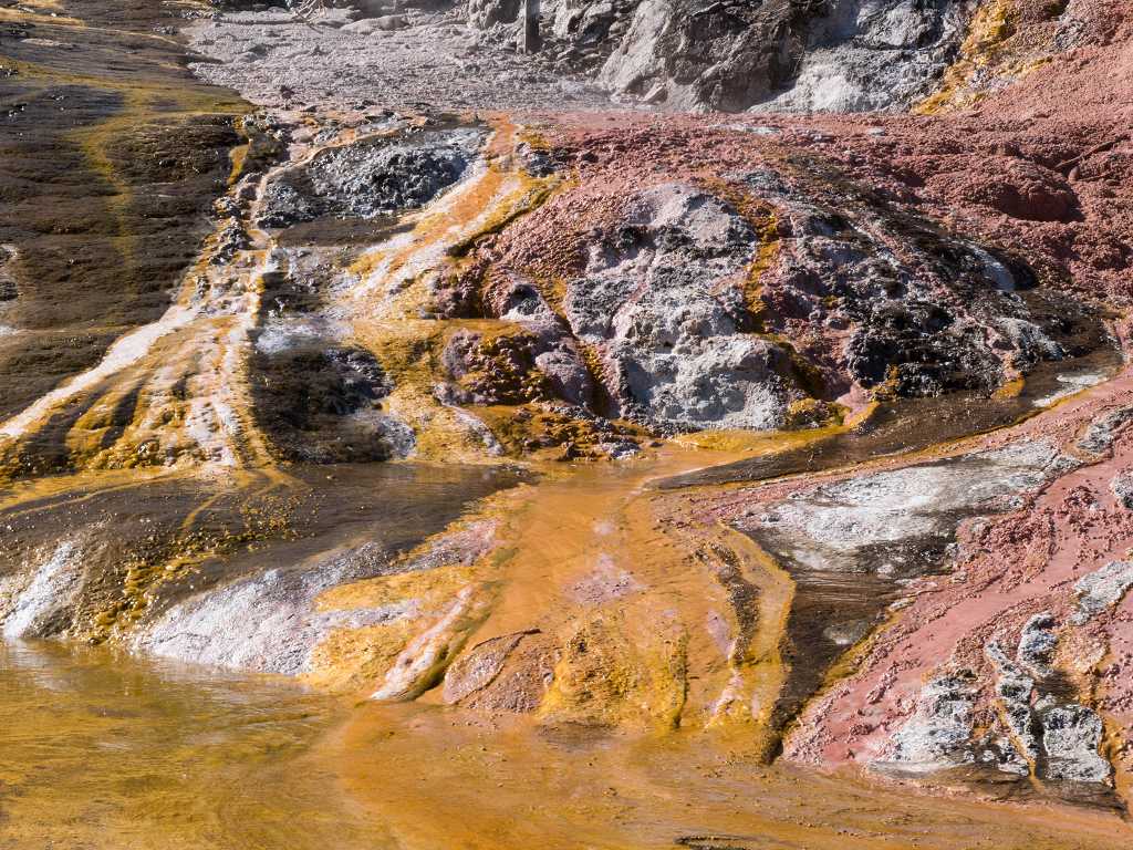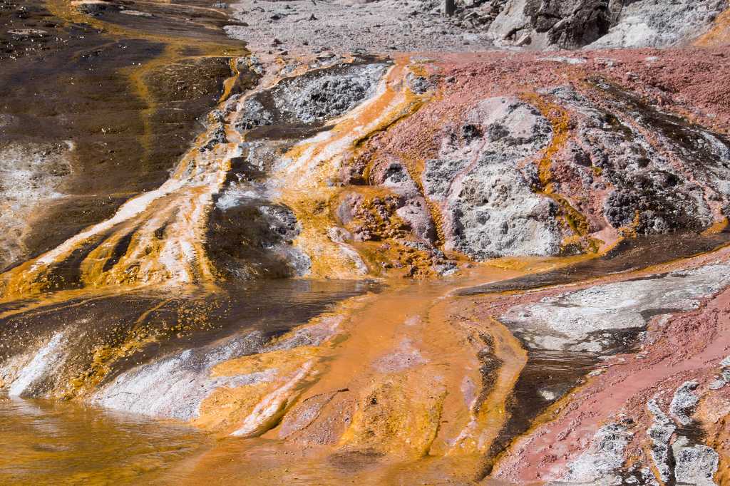 Es gibt unzählige Krater aus denen es dampft und brodelt aber auch besonders farbenprächtige Ausfällungen verschiedener Mineralien.