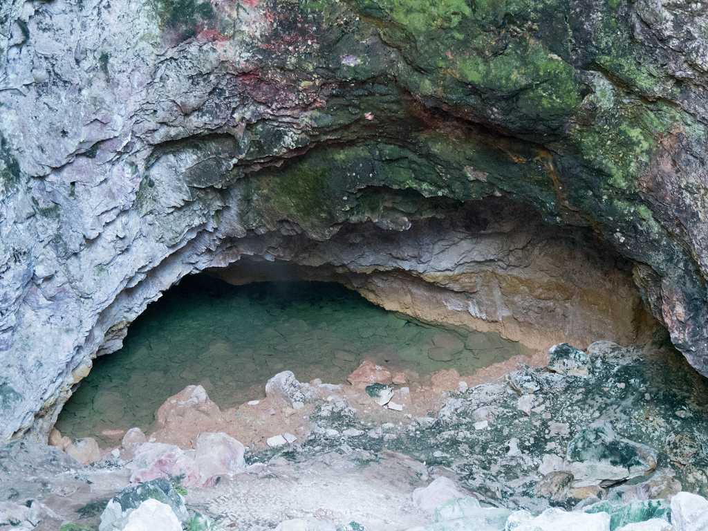Ziemlich am Ende des Rundgangs überrascht dann noch ein von Felsen umschlossener See von neon-grüner Färbung. Ein Anblick der surreal erscheint!