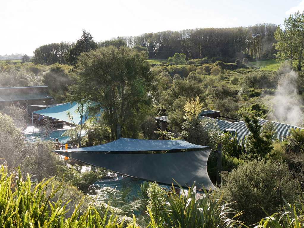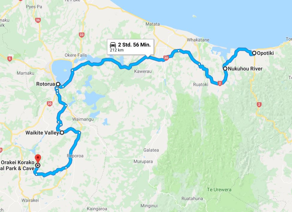 Zum Übernachten möchten wir absichtlich keine Unterkunft im touristisch überfüllten Rotorua suchen, sondern finden etwas abseits einen wahren Geheimtipp. Die nächsten zwei Nächte stehen wir mit unserem Camper Van im „Waikite Valley Thermal Pools“ – Park. Das Besondere an diesem Platz ist der Zugang zu den heißen Pools direkt am Campingplatz!