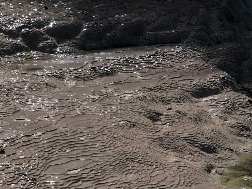 Zu Beginn baden wir unsere Füße erst einmal in einem warmen schlammigen Wasser mit angeblich medizinischer Wirkung.