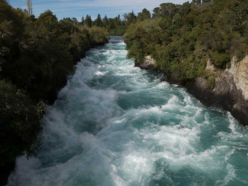 Der ca. 100 Meter breite Waikato River wird über eine Länge von reichlich 100 Metern durch eine 15 Meter enge Schlucht gepresst!