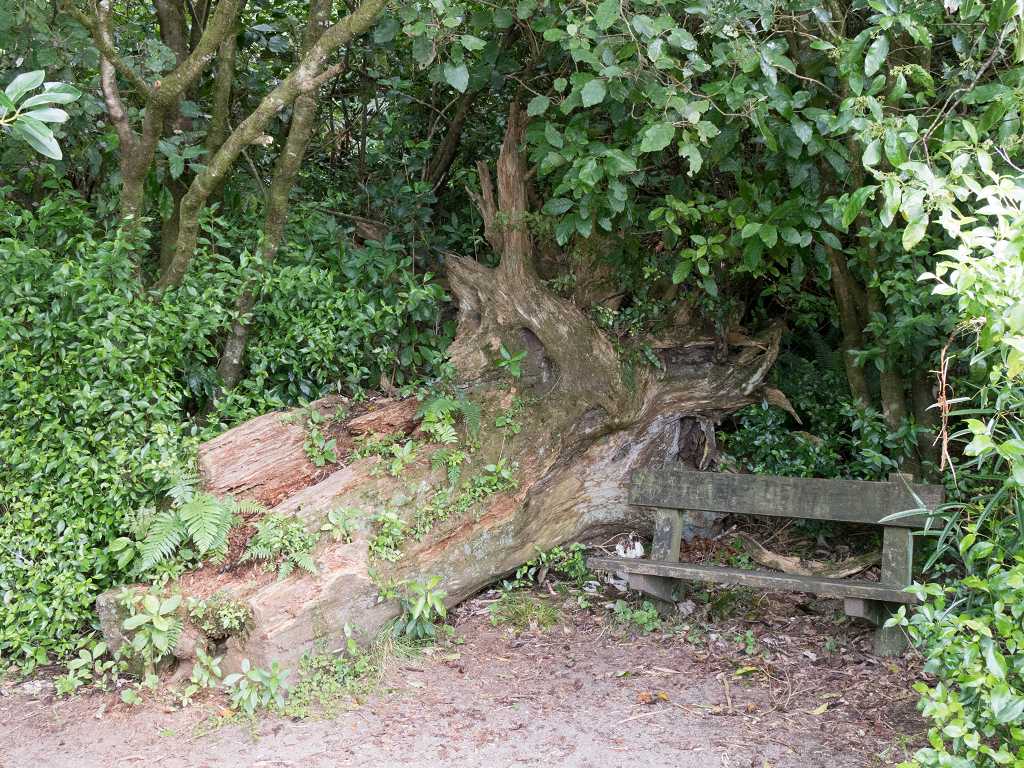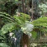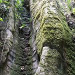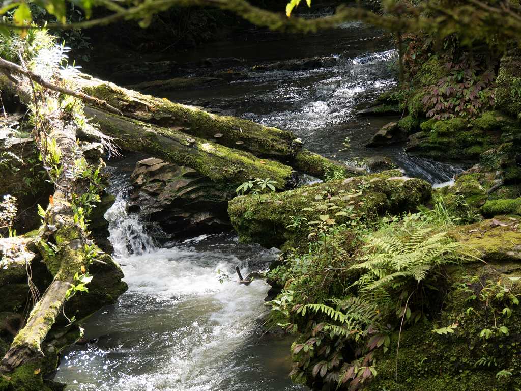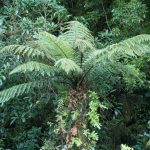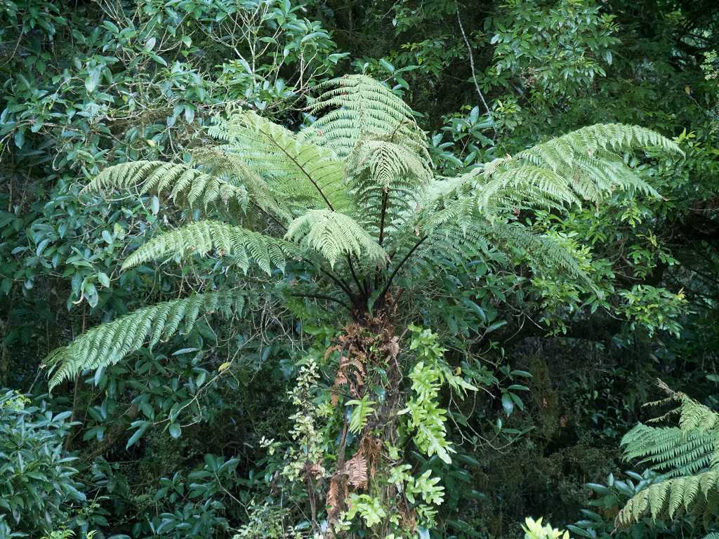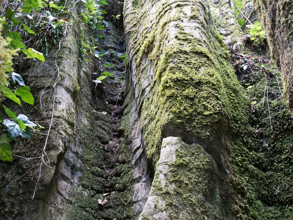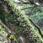Der Weg durch dichten urwüchsischen Wald ist wieder geprägt von einem Gewirr aus Bäumen, Lianen, Farnen verschiedenster Art. Querhängende oder umgestürzte Bäume bilden die Lebensgrundlage für neues Wachstum.