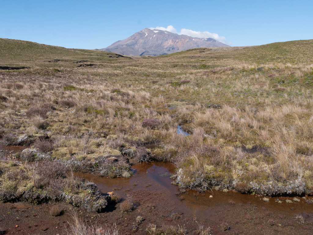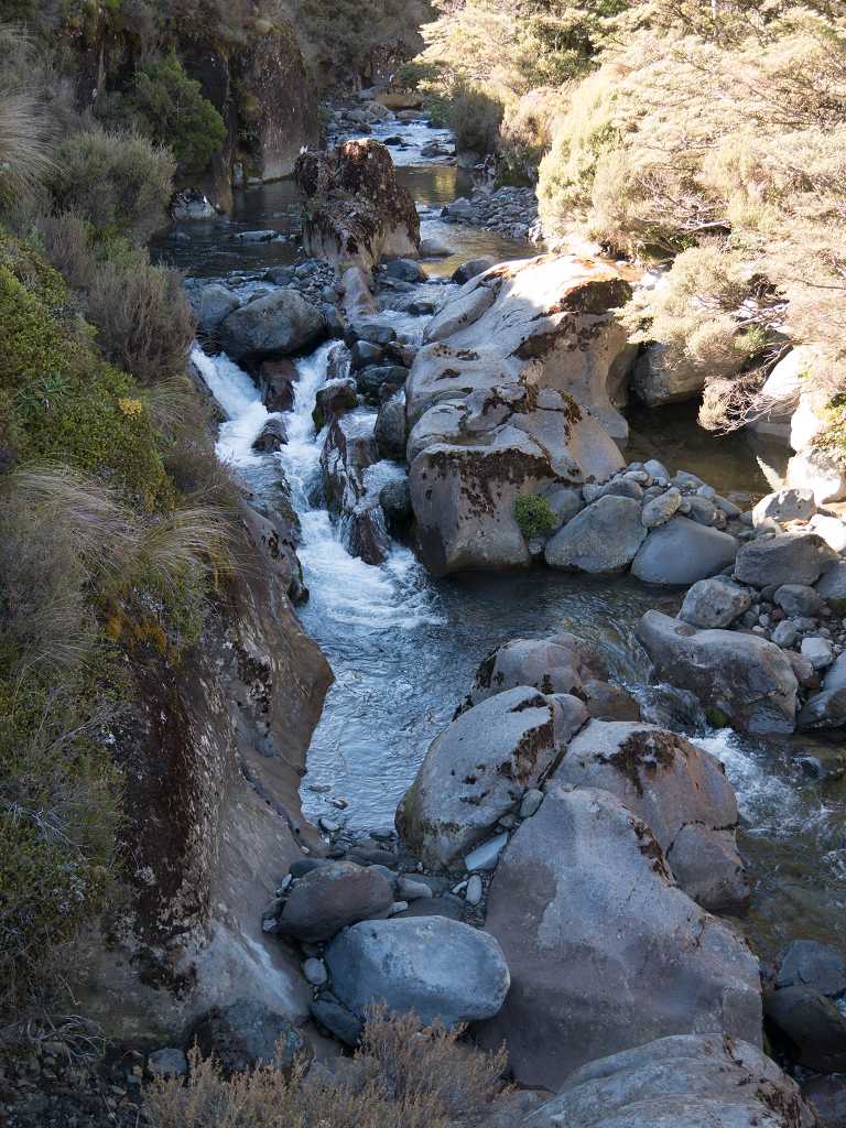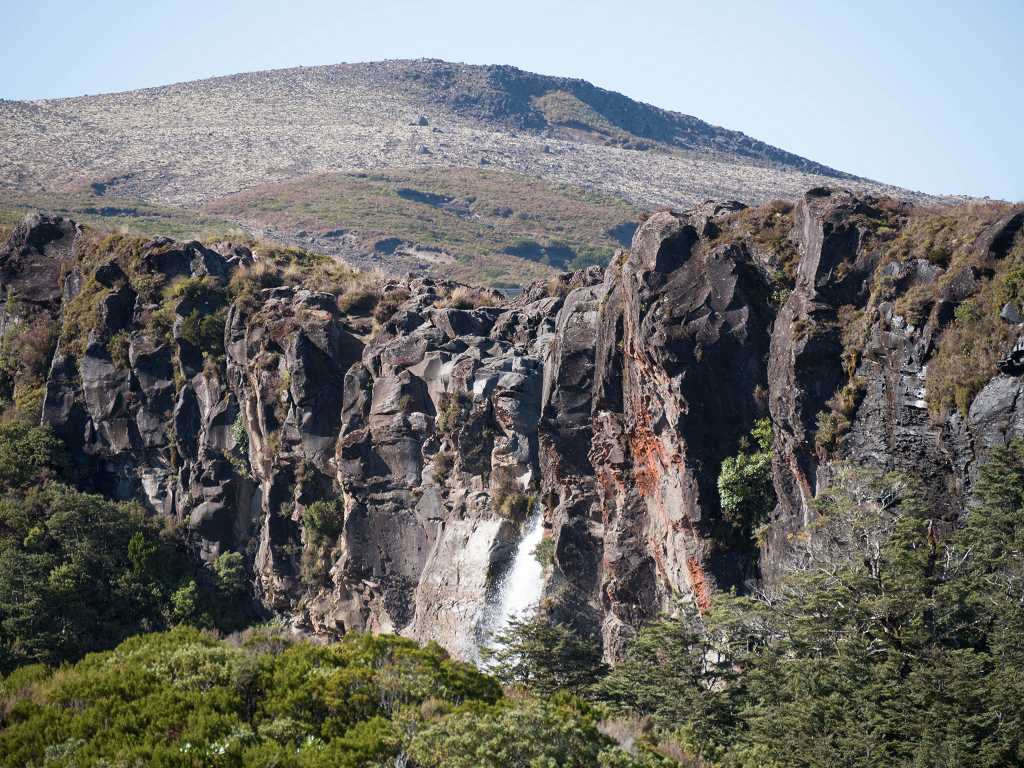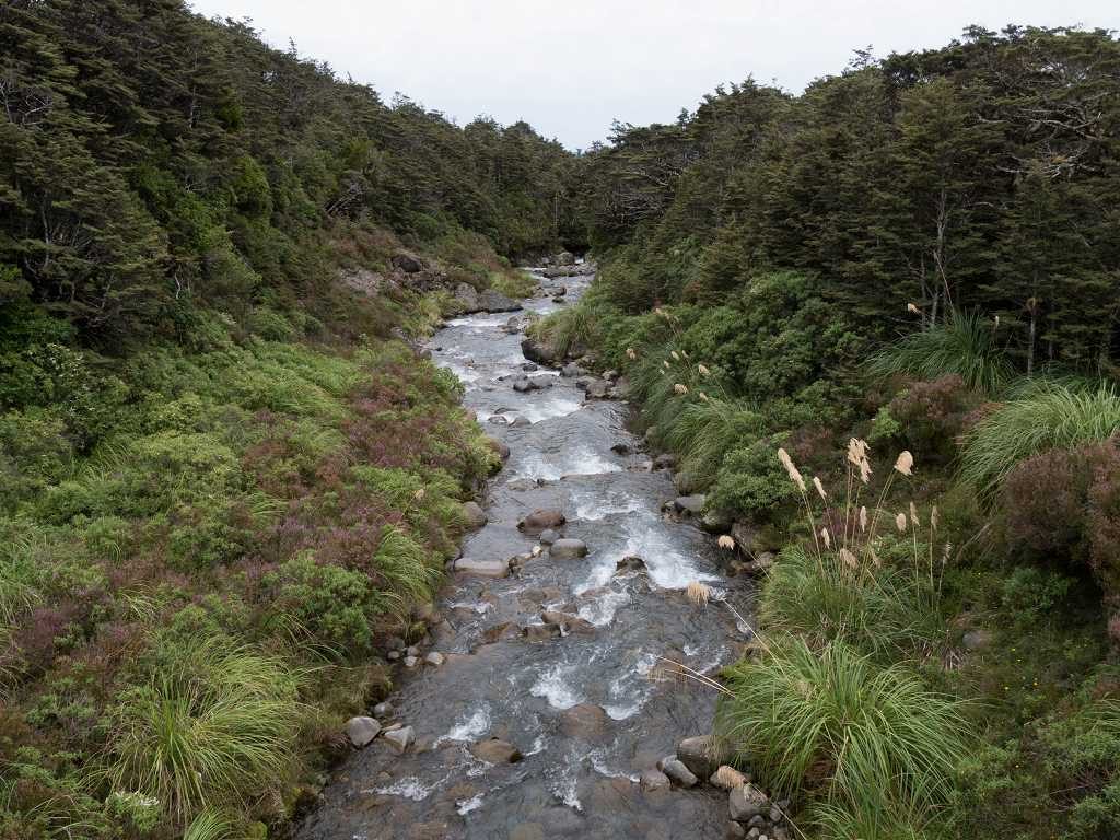 Kurz hinter dem Wasserfall gabelt sich der Weg. Thomas hat noch Ambitionen, weiter zu wandern, er möchte die beiden Gebirgsseen „Tama Lakes“ am Fuße des 2291 m hohen „Mount Ngauruhoe“ erreichen. Ich möchte meine Kräfte für morgen schonen und laufe zum Campingplatz zurück, wo ich mich für den Rest des Tages entspanne.