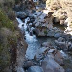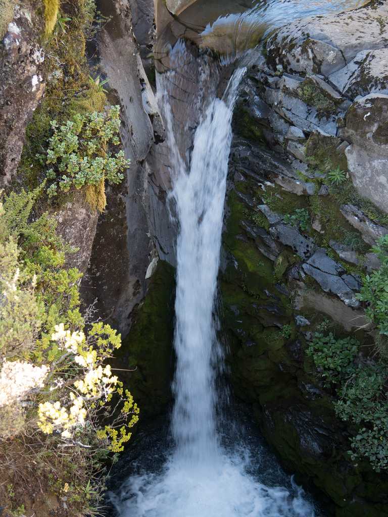 Zuerst durch Natur Forest, später durch baumlose Gebirgslandschaft verlaufend, wird der Weg von einem Gebirgsfluss begleitet. Der Flusslauf wird nach gut 45 min Gehzeit plötzlich auf einer Seite von einer hohen langen Felswand eingerahmt. Kurze Zeit später sehen wir dann den spektakulären Wasserfall etwa 30 Meter über diese Felswand stürzen