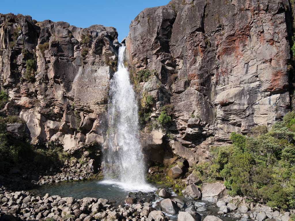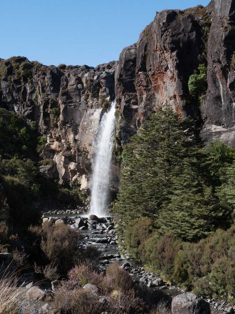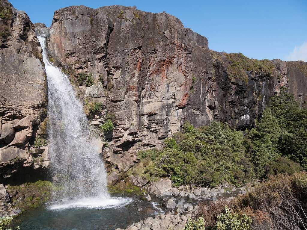 Unser Alternativprogramm für den Dienstag ist ein leichtes, denn wir wollen unsere Kräfte für morgen aufsparen. Also wandern wir zu den „Taranaki Falls“, eine schöne Tour von insgesamt zwei Stunden.