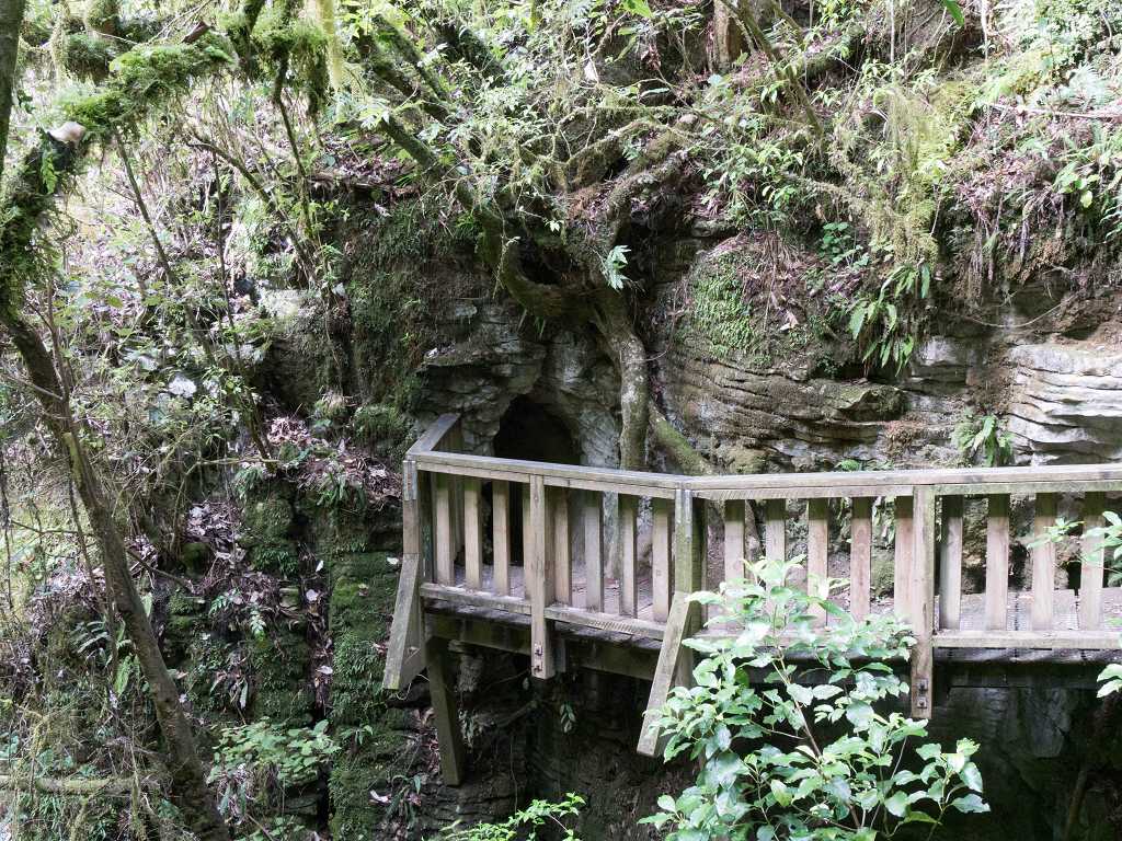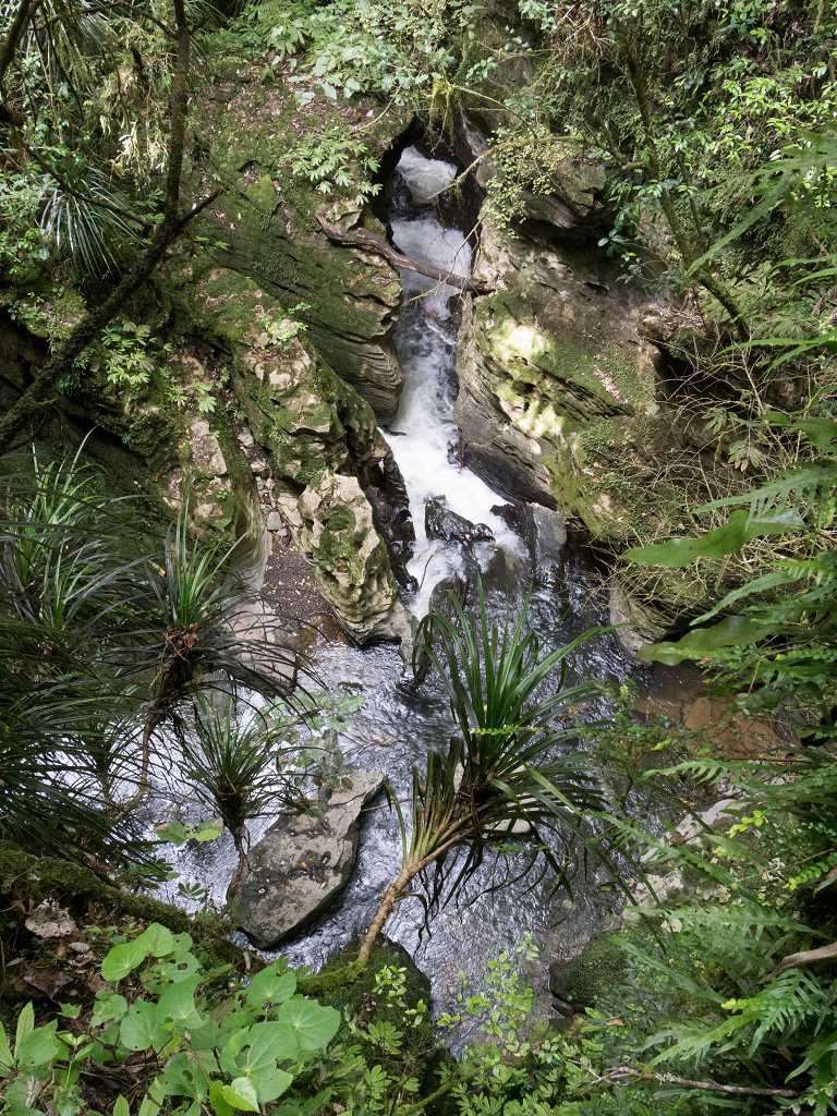 Nach 75 min schließt der „Ruakuri Bush Walk“ an und unsere Neugier ist noch nicht gesättigt. Er führt uns durch ein Felsenlabyrinth, Trepp auf, Trepp ab, durch eine Naturbrücke und mehrere Höhlen. Dann wieder am reißenden Fluss entlang oder hoch über dem Fluss, ein spektakulärer Walk.