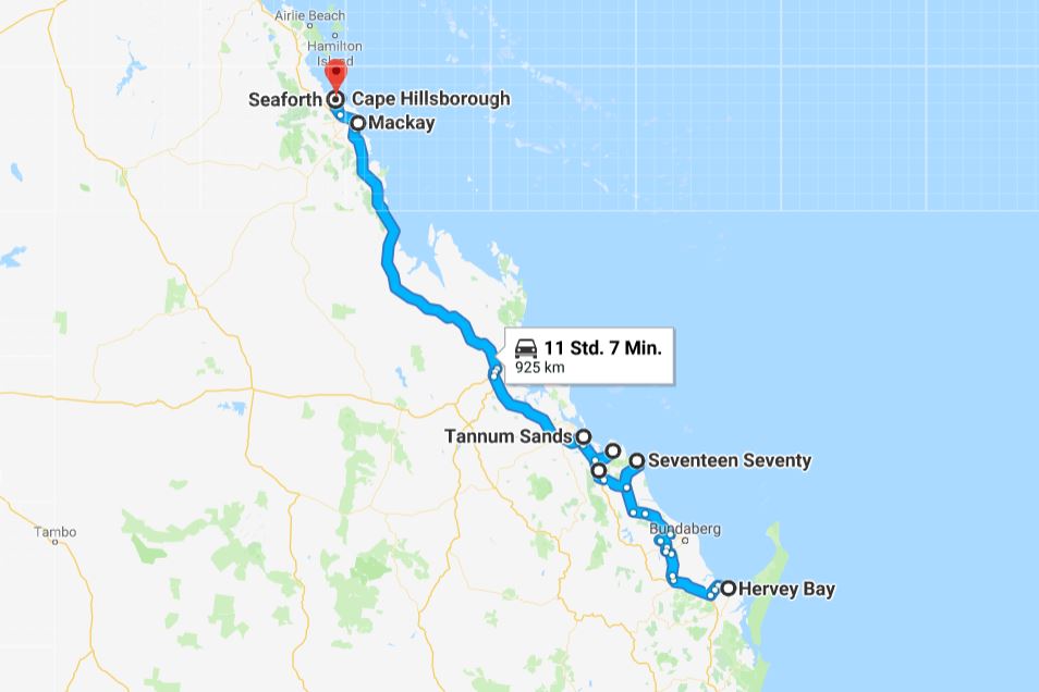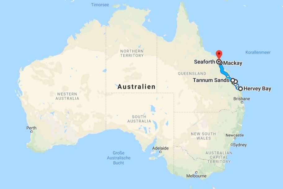 Noch recht sorglos starten wir am Morgen unsere Weiterreise Richtung Norden. Unser Plan ist, in den nächsten Tagen, in mehreren Etappen weiter bis nach Airlie Beach zu gelangen, um von dort eine Tour zu den Great Whitsundays, einer vorgelagerten Inselgruppe zu unternehmen.